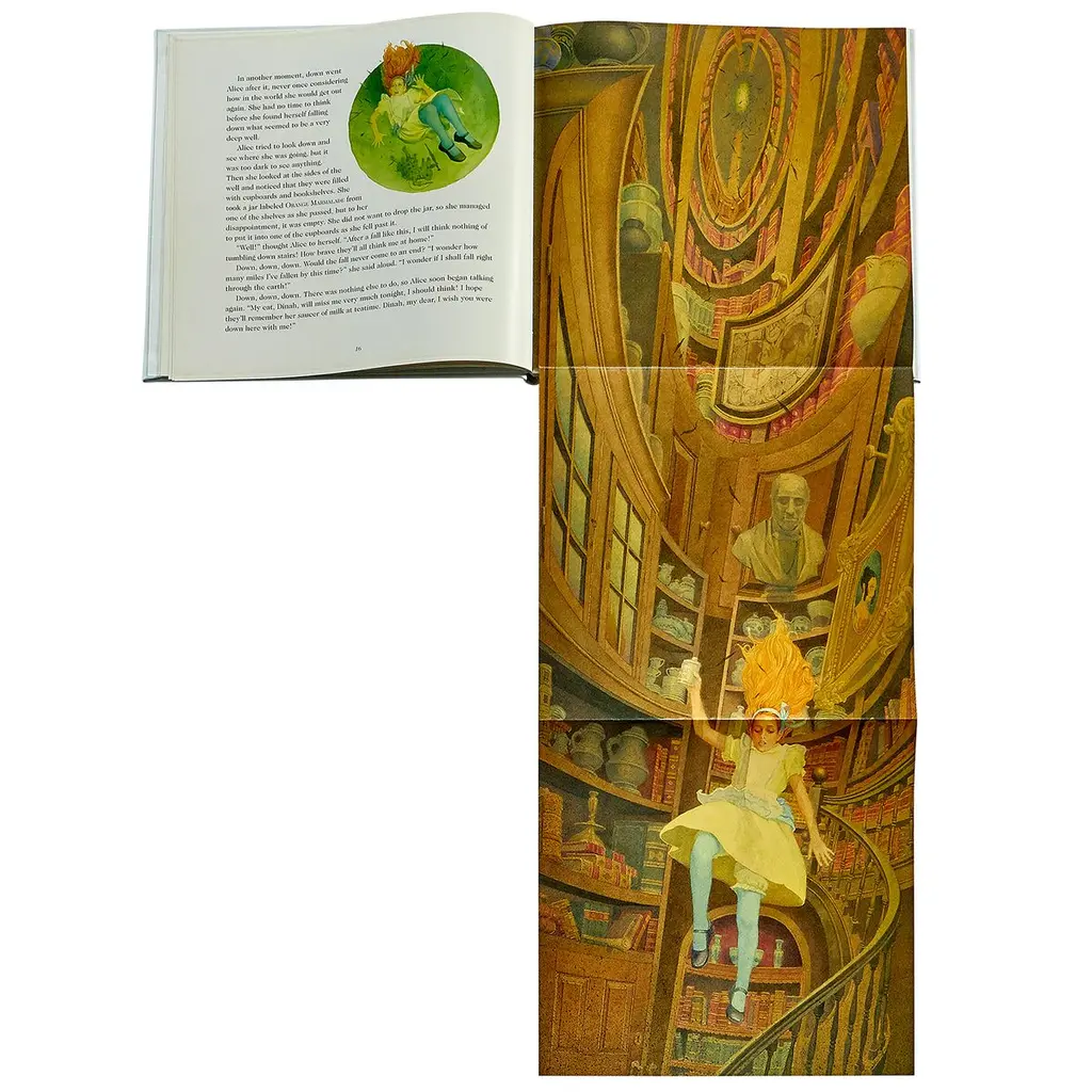 Fall down the rabbit hole with this stunning illustrated edition of Alice's Adventures in Wonderland. Explore the nonsensical and comical adventures with the White Rabbit, the Mad Hatter, the Cheshire Cat, and the Queen of Hearts in this abridged edition of the timeless tale. Join Alice on her adventure through Wonderland as she meets classic companions such as the March Hare, the caterpillar, and the duchess in an adapted story even the youngest readers will enjoy. Take delight in the stunning illustrations and peer through the looking glass at this timeless fantasy. Bound by hand in bonded leather, 96 pages.
