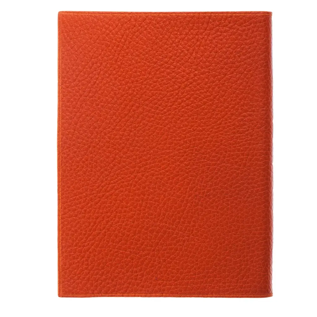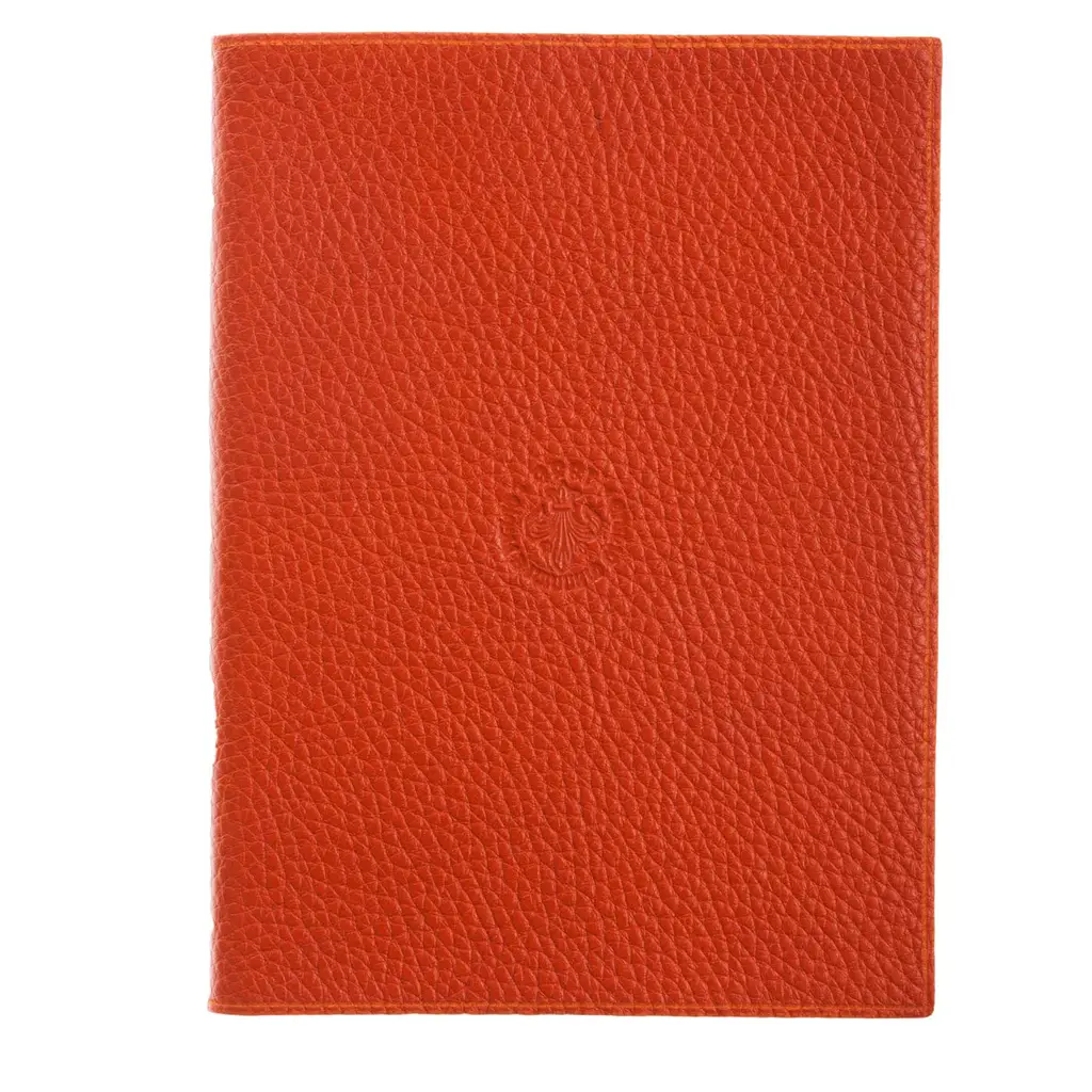Notebook in soft orange leather treated with vegetable tanning. Its ivory pages are hand decorated with the signature marbling of Florentine bookbinder Giannini. Each phase of the bookbinding process requires perfect precision from the artisan to achieve impeccable aesthetic and functionality.