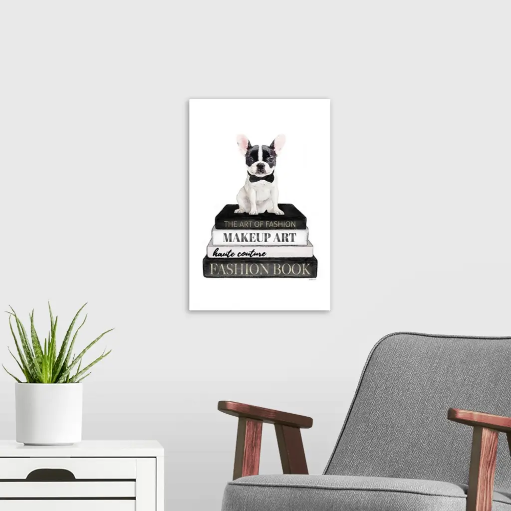 B&W Frenchie Bookstack wall art for home and office decor. Discover canvas art prints, photos, mural, big canvas art and framed wall art in GreatBigCanvas.com's varied collections.