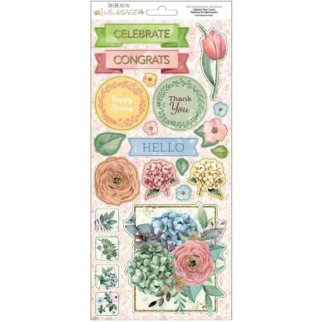 Stickers add the perfect finishing touch to your paper projects. They can be a fun embellishment, a whimsical accent or an elegant polish to scrapbook pages, greeting cards, mixed media and more. This package contains BoBunny Willow & Sage Layered Chipboard Stickers, eight stickers. Imported.