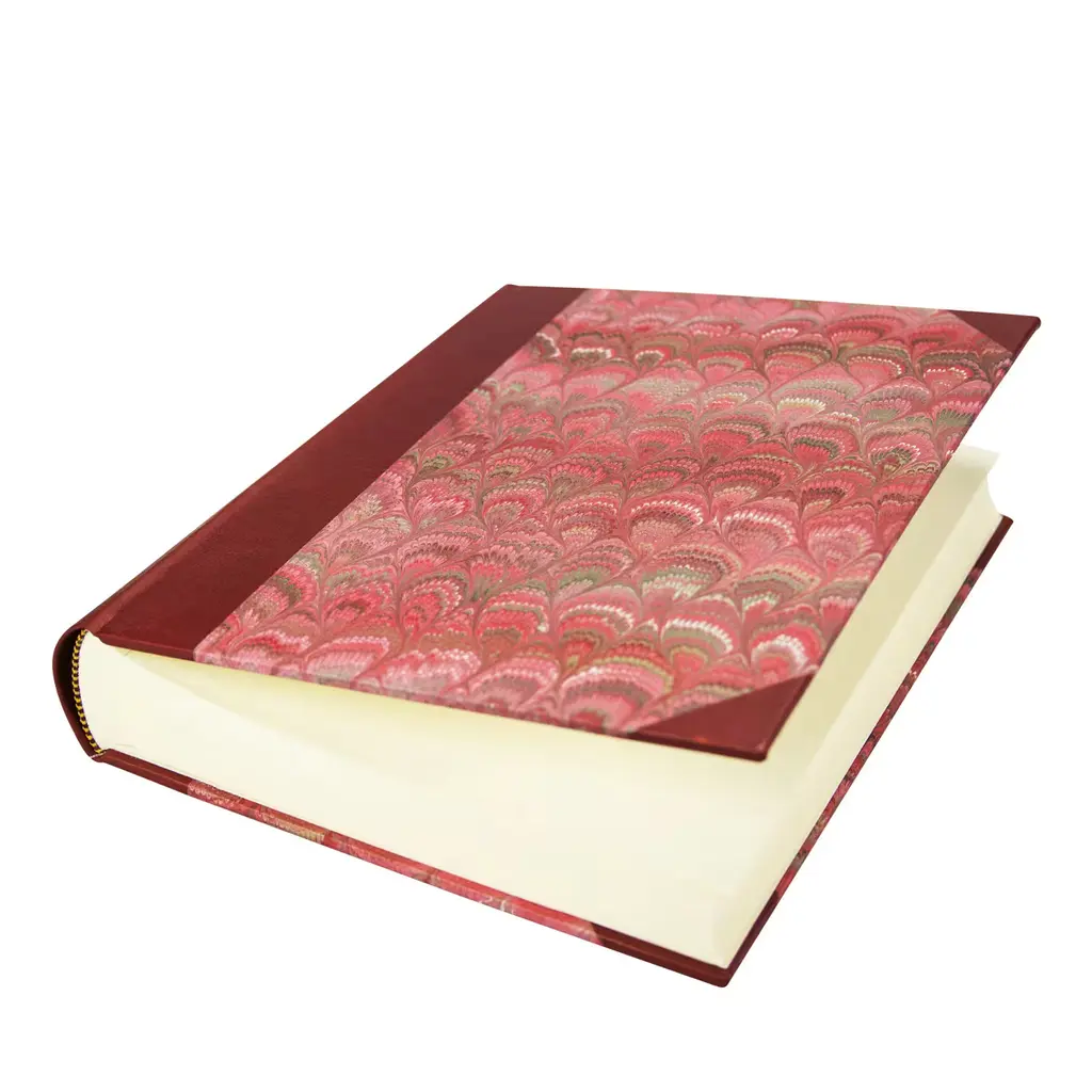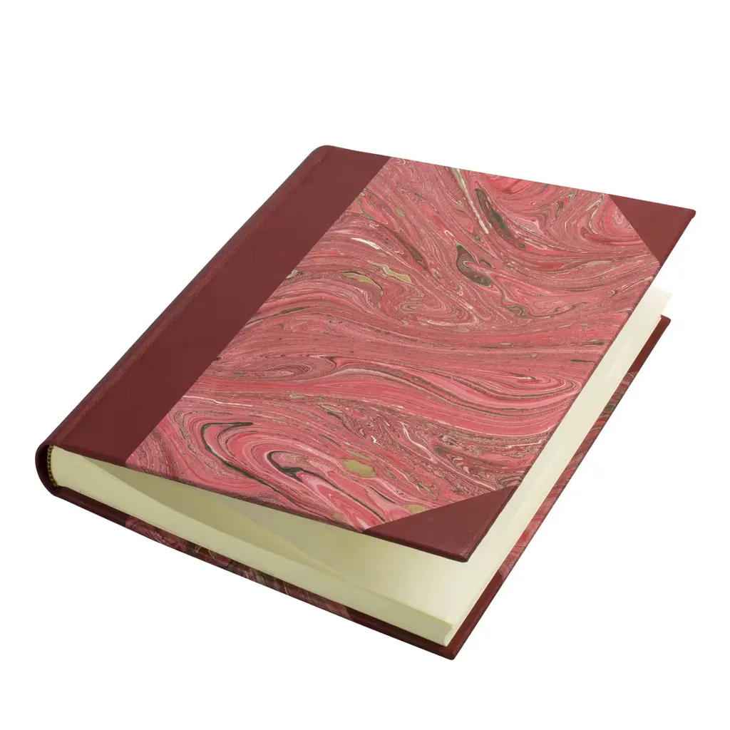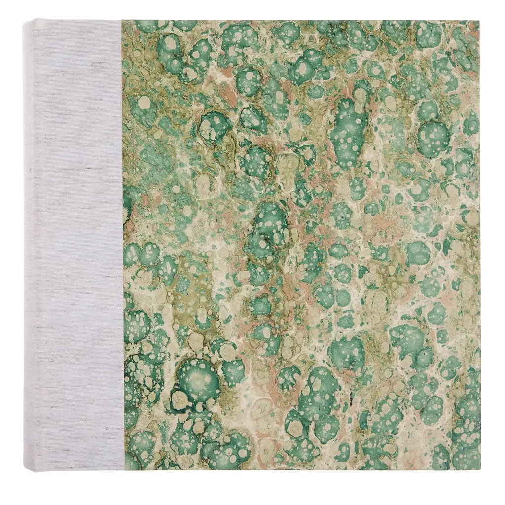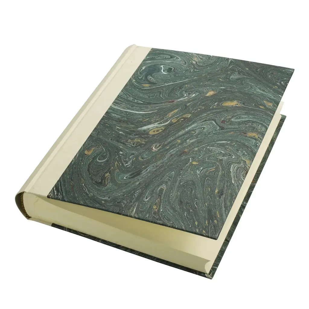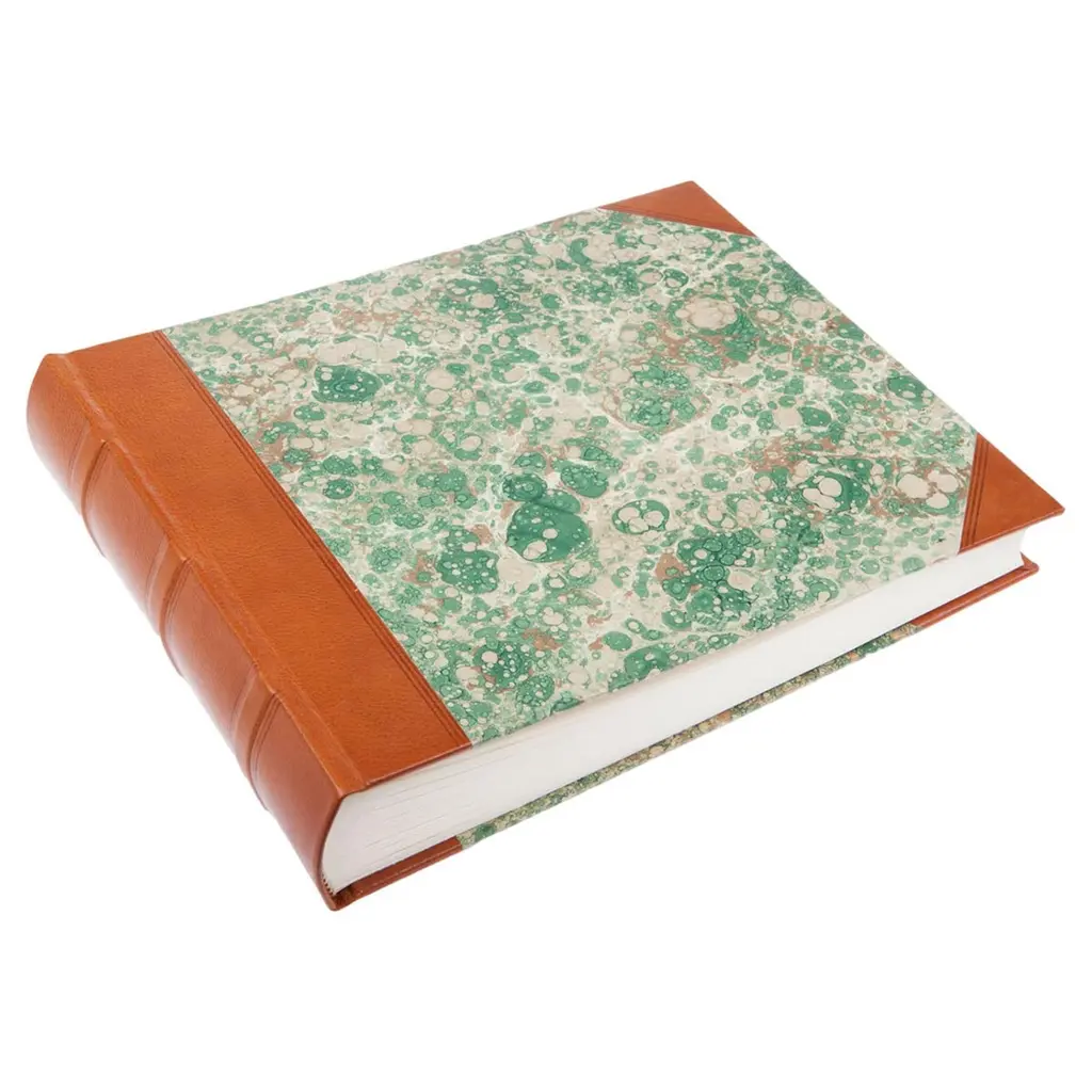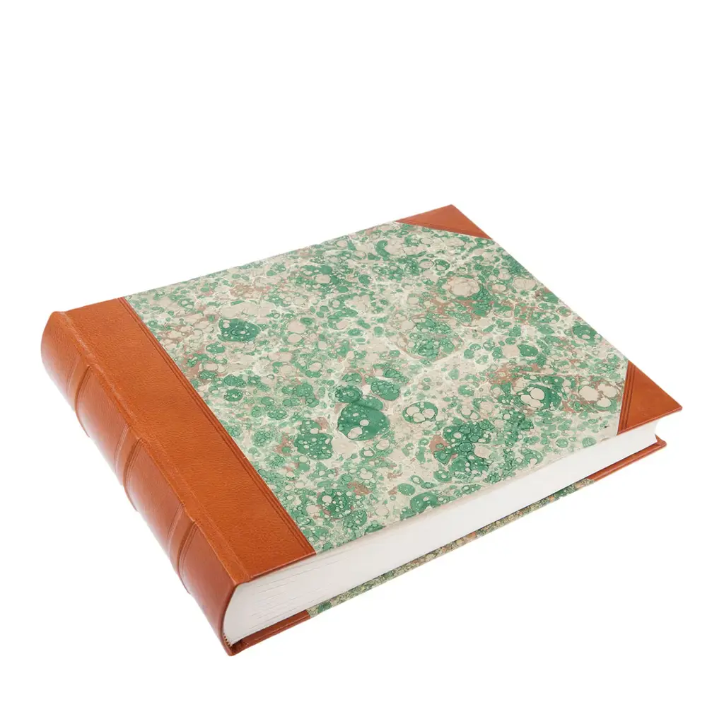 This is a photo album of canvas and marbled paper decorated by hand by the artisans of the Florentine bookbinders Giannini. Inside, card pages are separated by tissue paper. At the request of the client, the rear cover can be etched in gold on a leather label.