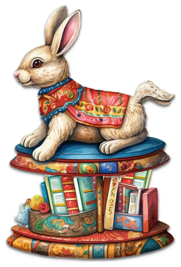 Carousel Bunny With Books Holiday Door Decor Christmas Decor