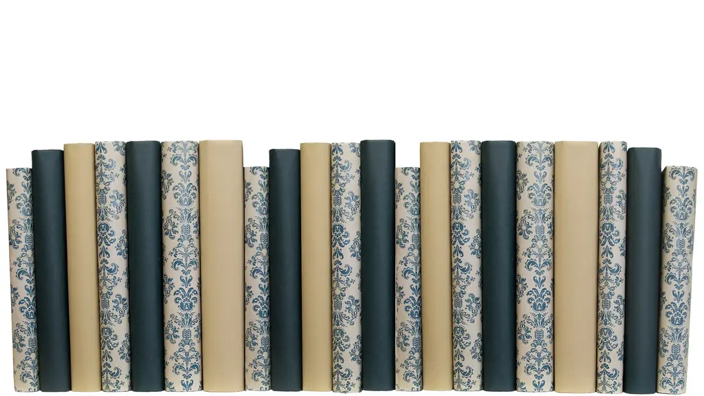 Take your design to a new level with Forest Mist Demask Wrapped Color By The Foot from Booth & Williams. Featuring one linear foot of authentic modern hardback books wrapped in warm tan and deep forest green mixed with a complementary demask patterned paper. Contains 10-12 books with an average height of 9.5-10�������. Order as many linear feet as you need to complete your project.