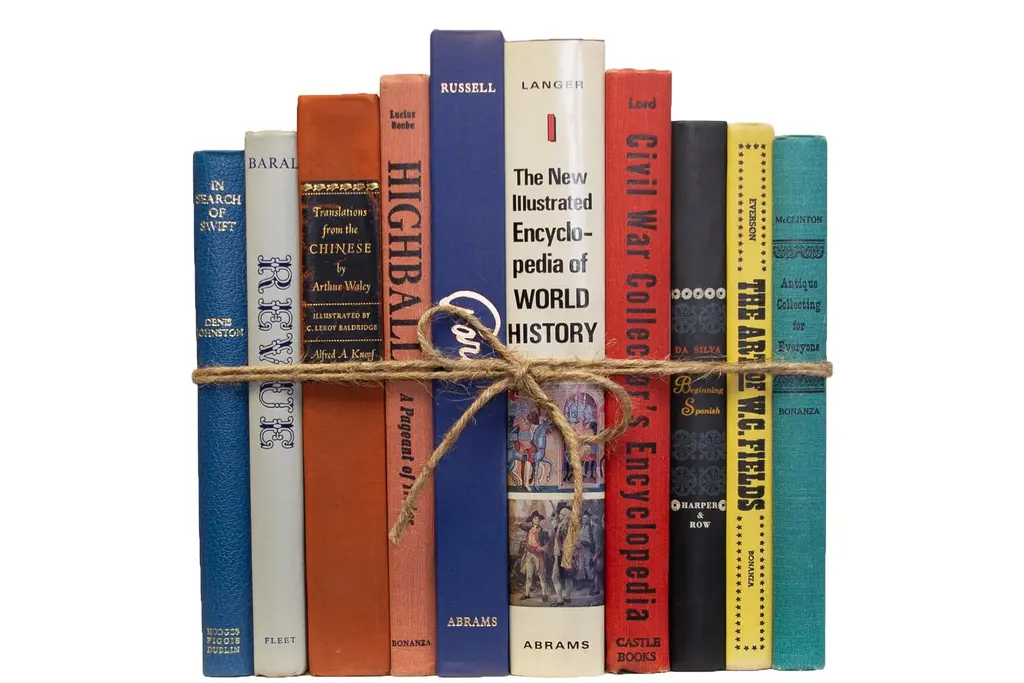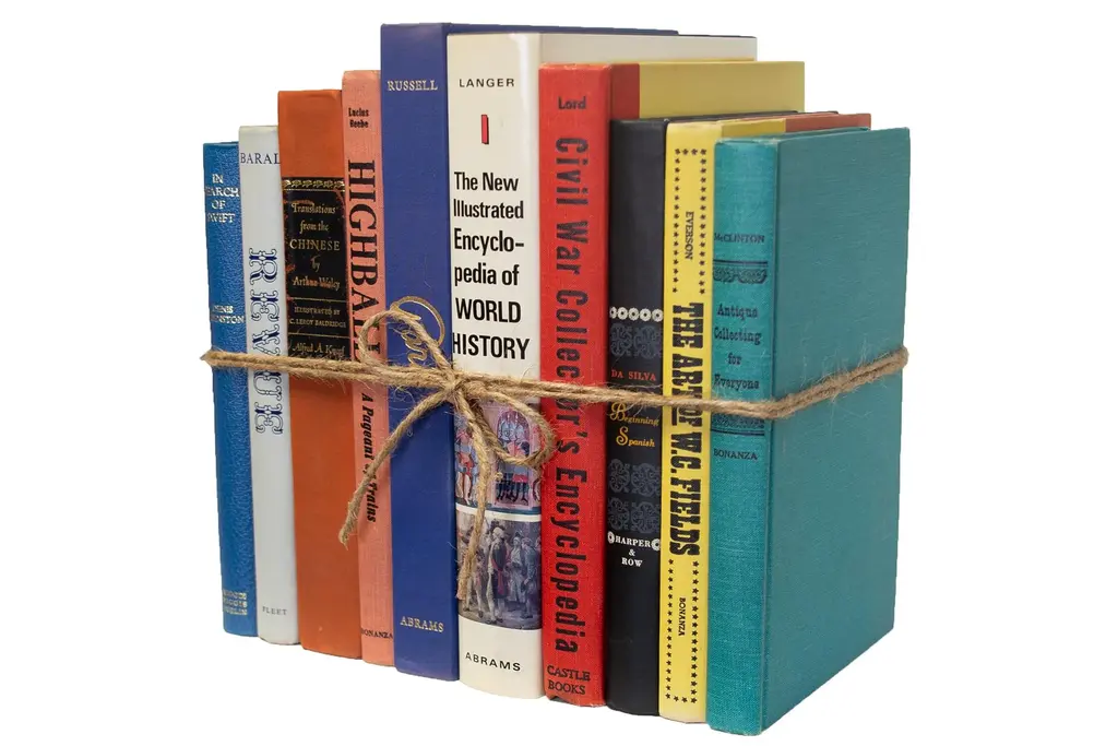One linear foot of authentic vintage titles published 1920-1985. A delightful blend of titles on art, literature, collectables, history and more in a variety of colors and textures. Each Pak contains 8-10 over-sized large books with an average height of 10.5-15" and hand wrapped in jute twine. Order as many ColorPaks as you need to complete your project. Titles will differ from those pictured.