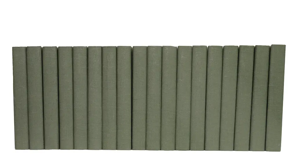 Transform your space with our Khaki Oversized Linen Wrapped ColorPak from Booth and Williams. One linear foot of authentic modern oversized hardback books hand wrapped in a muted tan linen fabric that is precisely attached to each individual book's cover. Contains 9 books with an average height of 12��������������������������. Made to order-allow 3-5 business days before shipment.