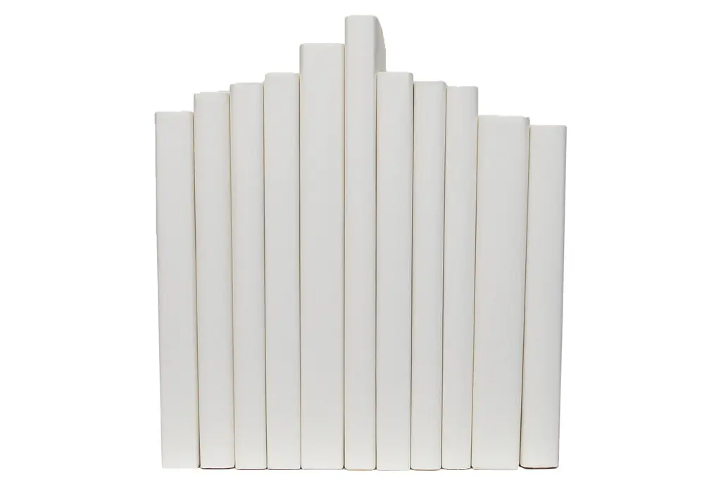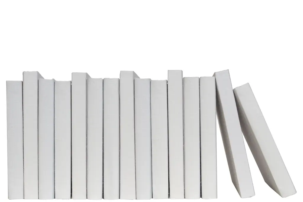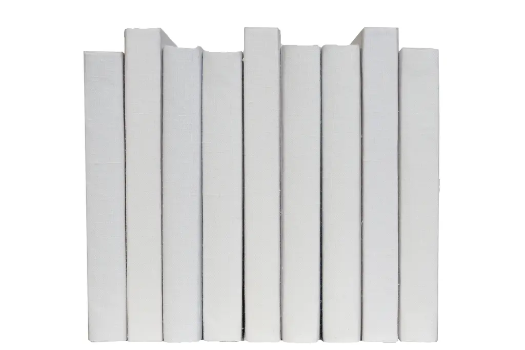 Transform your space with our Snowfall Oversized Linen Wrapped ColorPak from Booth and Williams. One linear foot of authentic modern oversized hardback books hand wrapped in a white linen fabric that is precisely attached to each individual book's cover. Contains 9 books with an average height of 12”. Made to order-allow 3-5 business days before shipment.