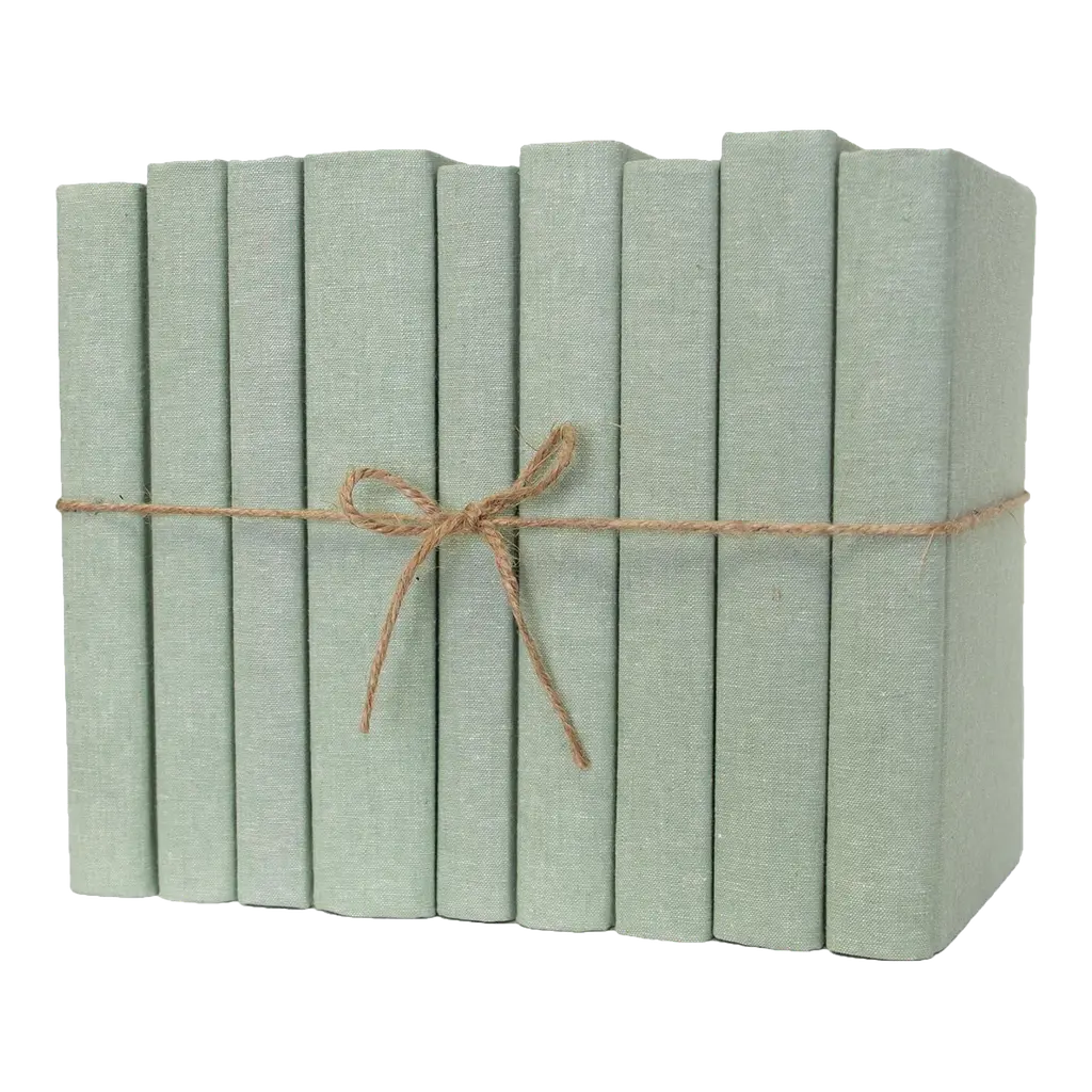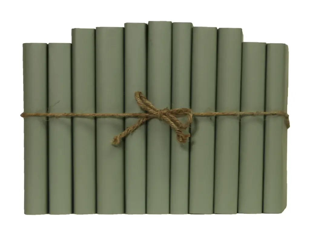 Add a splash of color to your design with a Spanish Moss Paper Wrapped ColorPak from Booth & Williams. One linear foot of authentic modern hardback books wrapped in a shade of mossy green 80T paper. Contains 10-12 books with an average height of 8.5-9.5" and hand-wrapped in jute twine.
