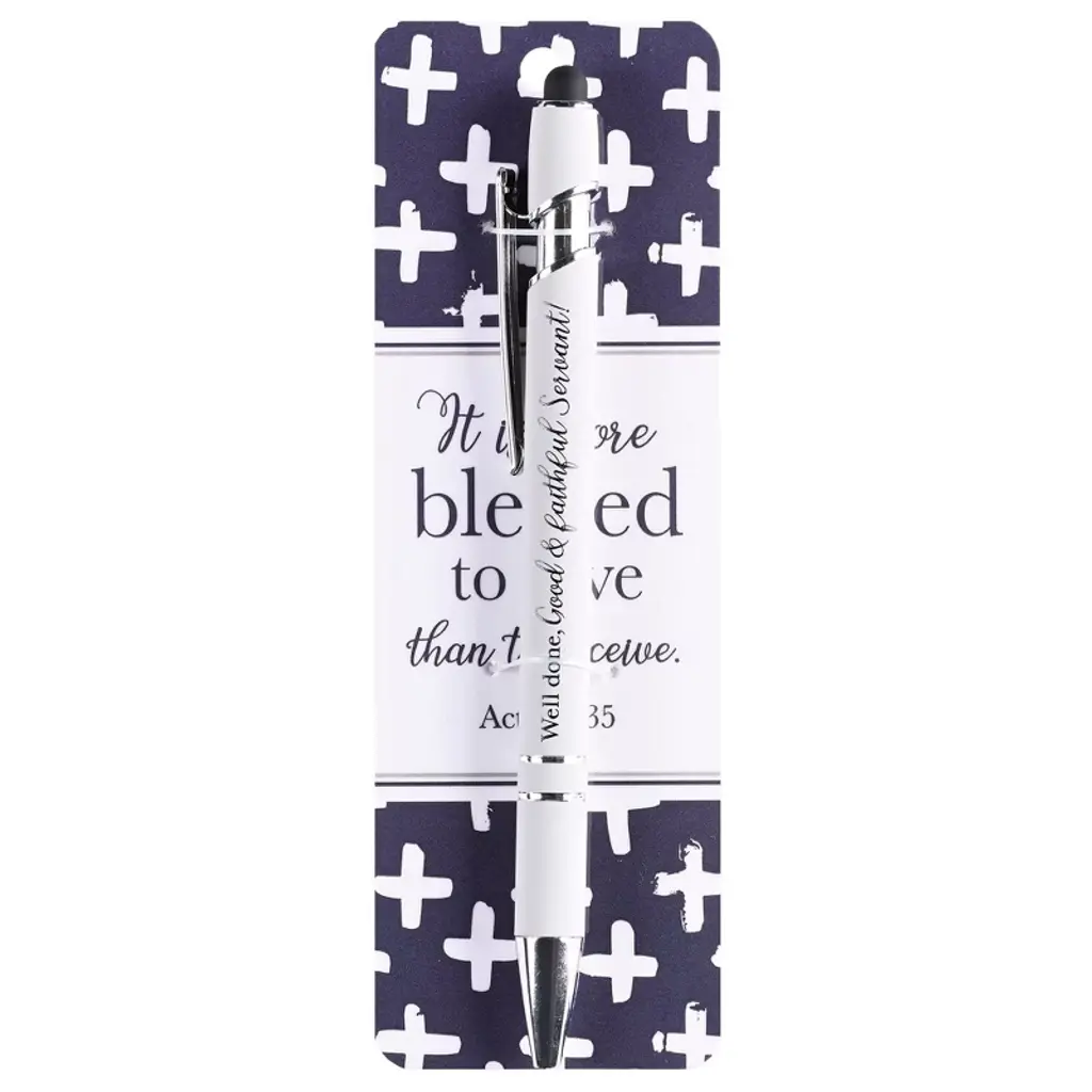 Features sentiment "They That Wait Upon The Lord Shall Renew Their Strength; They Shall Mount Up With Wings As Eagles." Isaiah 40:31; Ballpoint pen is made of a quality metal material with a cross inset on the clip; Measures approximately 6 inches long; Great for on the go, school, office, or home use; To and from spaces on the back make this perfect for gifting to a special person in your life who will appreciate the faith-filled encouragement; Contained in protective packaging; Ready for easy gifting for a birthday, holiday, Christmas, Mother's Day or other celebration