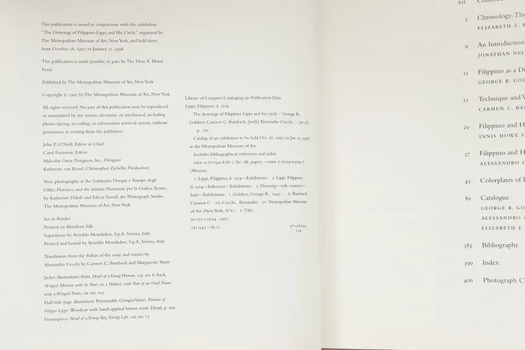 The Drawings of Filippino Lippi and His Circle. Published by The Metropolitan Museum of Art in conjunction with the exhibition held there from October 28th 1997 to January 11th 1998. Printed in Italy. Hardcover book with dustjacket, 406 pages.