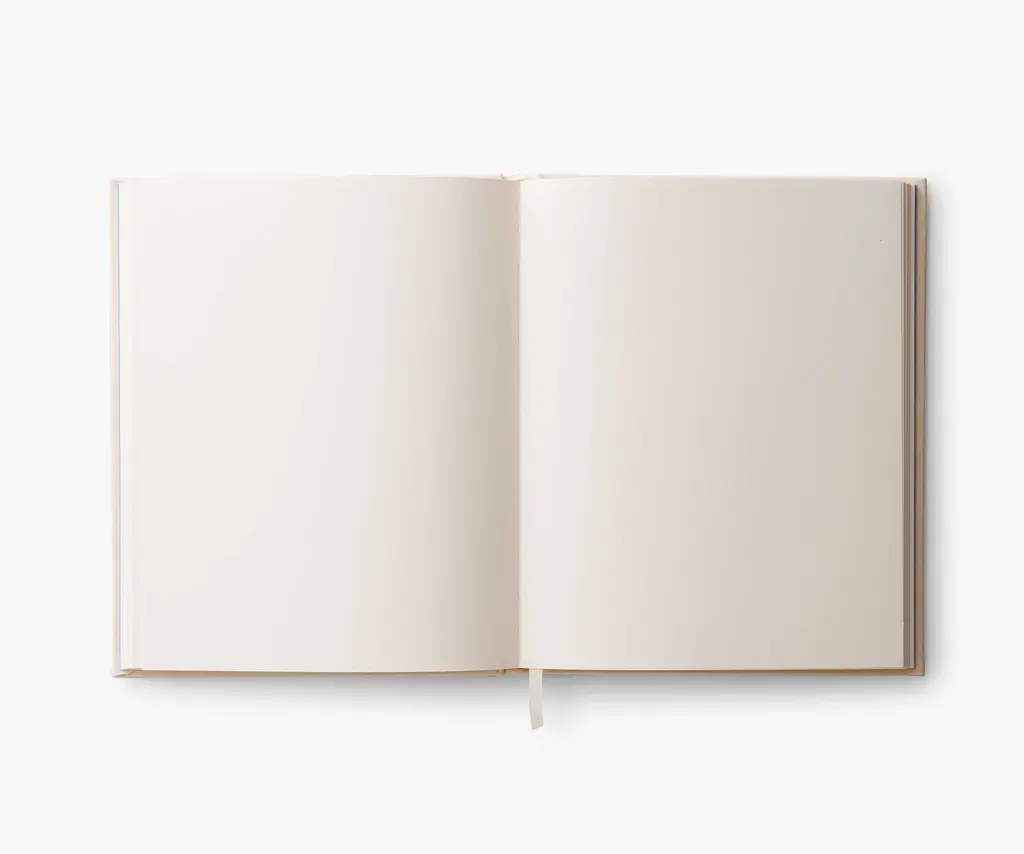 Our embroidered sketchbook is a large, hardcover journal with 108 unlined pages of thick paper perfect for sketching, drawing, and journaling. The cover is wrapped in cream book cloth and embroidered with the beetles and bugs of our Curio print with metallic gold accents. An attached grosgrain ribbon bookmark will save your place.
