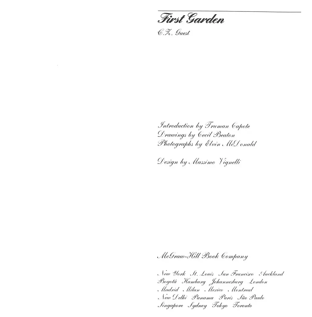 GUEST, C.Z. CAPOTE, Truman [introduction by] [140] pp. McGraw-Hill Book Company 1987 First Printing 10 1/4" x 10 1/4" w/ Drawings by Cecil Beaton Design by Massimo Vignelli Lucy Douglas "C.Z." Guest (née Cochrane; February 19, 1920 – November 8, 2003) was an American stage actress, author, columnist, horsewoman, fashion designer, and socialite who achieved a degree of fame as a fashion icon. She was frequently seen wearing elegant designs by designers like Mainbocher. Her unfussy, clean-cut style was seen as typically American, and she was named to the International Best Dressed List Hall of Fame in 1959.