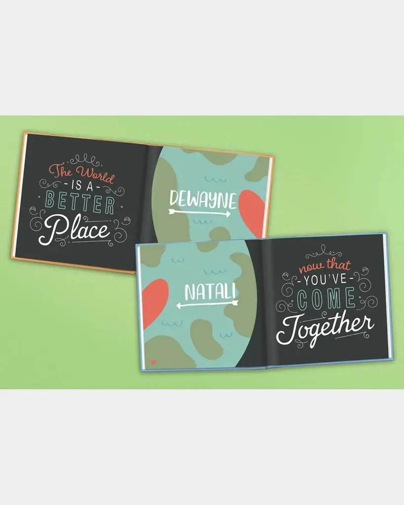 Delight the happy couple with a sentimental and personalized wedding gift or bridal shower gift! “Two Become One” comes with two books, one for each partner. When the two books are opened side-by-side, the illustrations cross over to create a complete illustration. The beautiful visuals tell the couple’s “relationship of a lifetime” story, with loving quotes and well wishes for the future. The book also offers helpful ideas for future date nights, anniversary gifts, and ways to show they care. Can be personalized with each person's name (up to 15 characters each), the date of their wedding (MM/DD/YYYY), and their state (up to 20 characters) Approx. 6.5"Sq. Set of two; one for each partner Paper Item Weight (Lbs.): 1.5 Made in USA Please Note: Please order carefully. Orders for personalized items cannot be canceled, and personalized items cannot be returned. About I See Me!: The I See Me! book series was created by a husband-and-wife team with the goal of producing personalized children's books. These books celebrate the individuality of every child while helping build vocabulary skills.