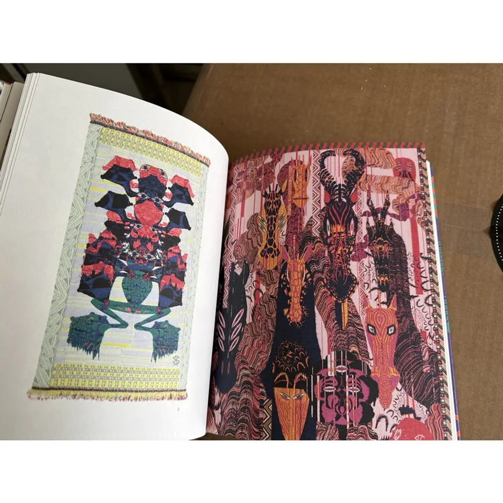 Kustaa Saksi: Cosmos by Garret Publications invites you on a captivating journey through the artistic legacy of Finnish creator Kustaa Saksi from 2012 to 2023. Based in Amsterdam, Saksi is renowned for his large textile tapestries that explore the essence of the universe through vibrant psychedelia and colorful surrealism. Jussi Puikkonen's photographs immerse you in Saksi's distinctive esthetic, while essays by Jessica Hemmings and Niina Tanskanen unveil the stories behind the artworks. Finished with golden details, the hard-covered book spans 187 pages and is written in English. Kustaa Saksi has created a unique visual style. Saksi traces recurring patterns of the world by observing natural phenomena, human sensory experiences, and the art and artifacts our culture has produced. With his art he has fabricated his own cosmos, one that is ever growing and expanding. The word cosmos, meaning the universe, is derived from the Greek kosméo, which is linked to expressing an order and arrangement of a particular world with decoration and ornamentation. The very idea of cosmos is at the heart of a designer’s or an artist’s work that aims to create and inhabit a world of its own. ’Cosmos’ looks back at an important chapter in Saksi’s career – his textile art, made between 2012–2023. In his tapestries, he takes us on a journey through transitional, eerie spaces that emerge between the imagined and the real, sleep and wakefulness, madness and sanity.
