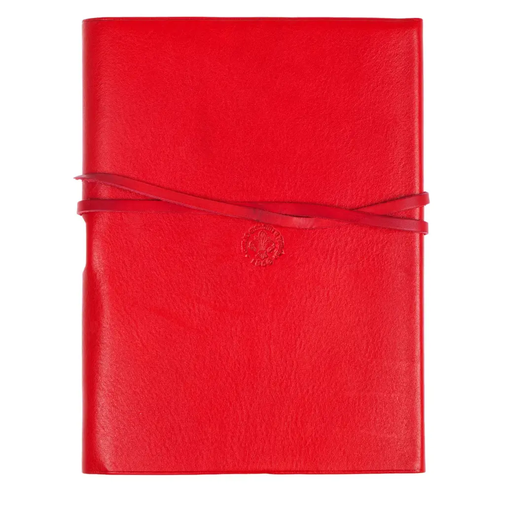Classic notebook by Florentine bookbinder Giannini with a red soft leather cover treated using the ancient technique of vegetable tanning. Entirely handcrafted using century-old binding techniques, the notebook contains ivory paper suitable for drawing or writing.