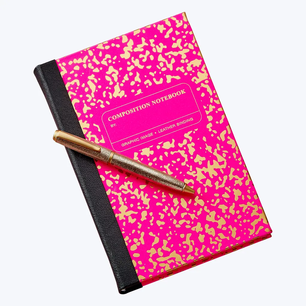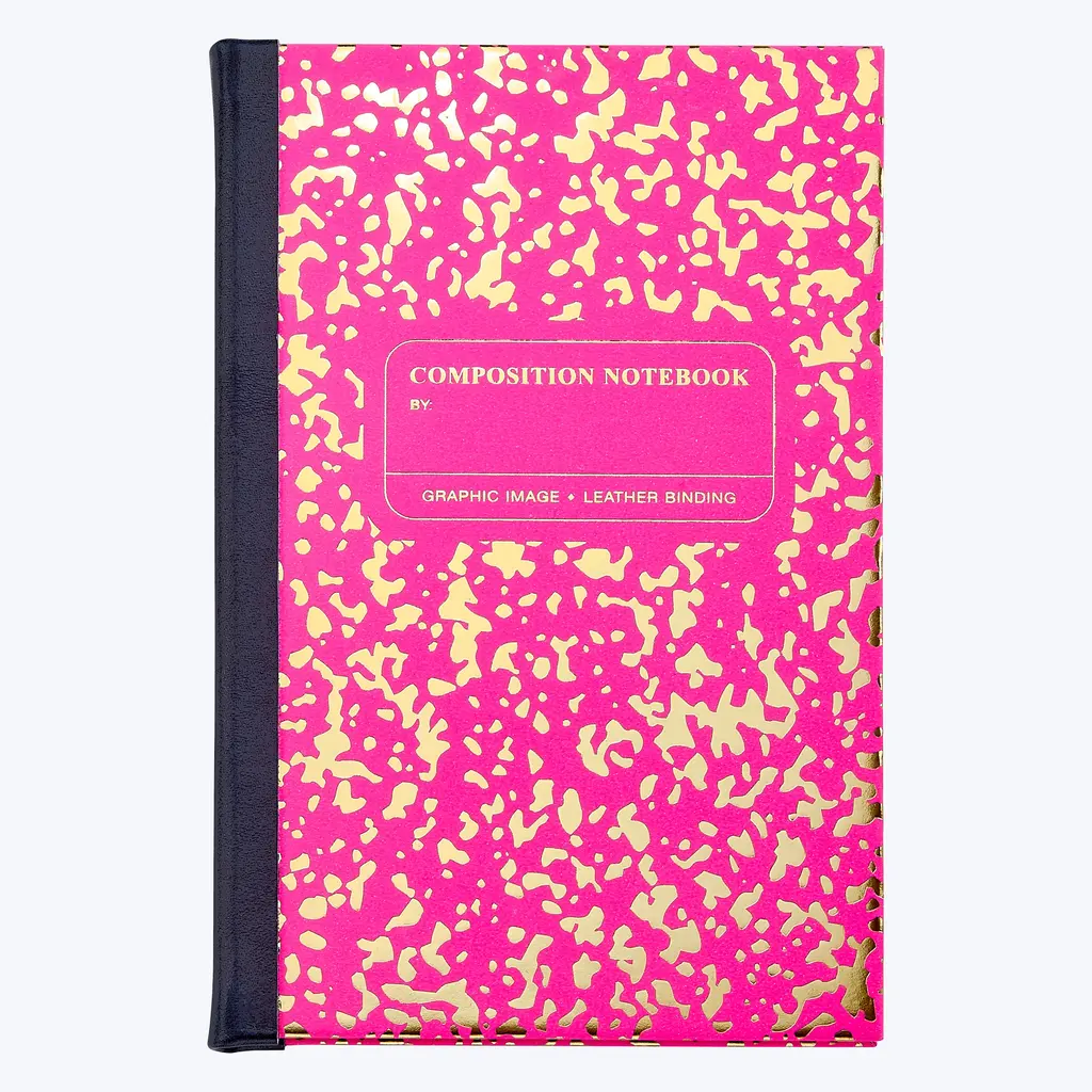 The Leather-bound Neon Composition Book by Graphic Image features a bright take on the cult classic. Handmade with a hard cover and black spine, this iconic composition notebook comes in three playful neon colors. The interior boasts archival quality paper, chosen for its opacity and ink absorption. A must-have accessory for any writer or observer.