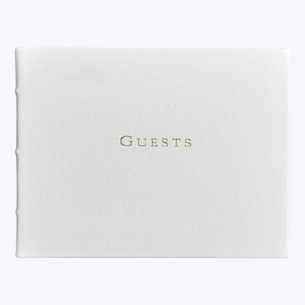 Our elegant leather guest book sets the tone for your next event. Our handmade genuine leather guest books are suitable for many occasions, from weddings to business or social events. Includes 160 acid-free archival lined pages with gilt edges. Enough room for your most important guests' signatures.