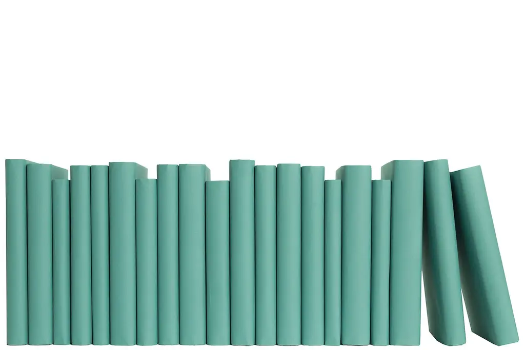 Transform your space with our Jade Linen Wrapped Color By The Foot from Booth and Williams. One linear foot of authentic modern hardback books hand wrapped in varied shades of light sage green and dark hunter green Linen Fabric that is precisely attached to each individual book's cover. Contains 7-12 books with an average height of 9.5-10”. Order as many linear feet as needed to complete your project. Made to order-allow 3-5 business days before shipment.