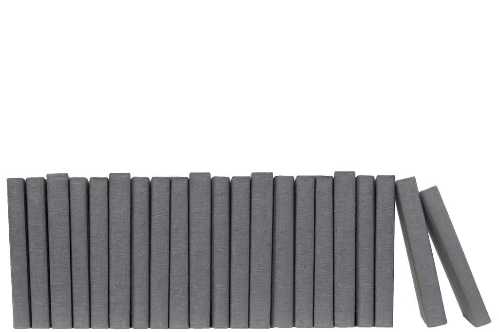 Transform your space with our Slate Linen Wrapped Color By The Foot from Booth and Williams. One linear foot of authentic modern hardback books wrapped in muted shades of grey Linen Fabric that is precisely attached to each individual book's cover. Contains 7-12 books with an average height of 9.5-10”. Order as many linear feet as needed to complete your project. Made to order-allow 3-5 business days before shipment.