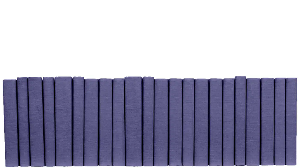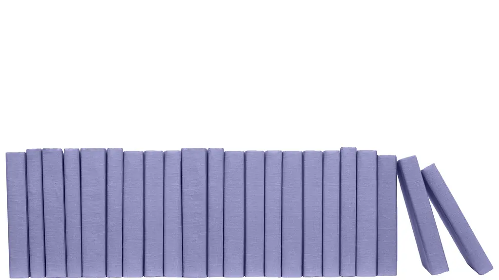 Transform your space with our Dark Very Peri Linen Wrapped Color By The Foot from Booth and Williams. One linear foot of authentic modern hardback books hand wrapped in a violet infused blue linen fabric that is precisely attached to each individual book's cover. Contains 7-12 books with an average height of 9.5-10�����. Order as many linear feet as needed for your project. Made to order-allow 3-5 business days before shipment.