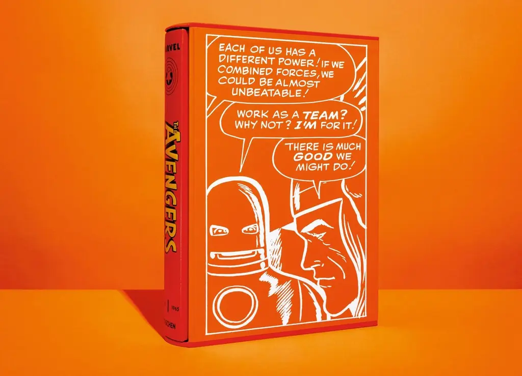 Earth’s Mightiest HeroesAssembling the definitive Marvel Age Avengers anthologyBy early 1963 the foundations of the Marvel Universe had been laid. Following the introduction of the Fantastic Four in 1961 came the amazing (Spider-Man), the astonishing (Ant-Man), the strange (Doctor, that is), the incredible (Hulk), the invincible (Iron Man) and the mighty (Thor). Still, Marvel editor in chief Stan Lee realized something was missing. “I was writing these characters and I thought it would fun to put them together in a team,” he recalled. So Lee and artist Jack Kirby assembled Iron Man, Ant-Man and the Wasp, Thor, and the Hulk to create the Avengers.Right away it was clear this team was different. If the Fantastic Four were family, then the Avengers were the co-workers you didn’t choose. Not everyone got along—the Hulk fought with everyone—but working together they could defeat the baddest of Marvel’s bad guys, like Loki, Kang the Conqueror, the Masters of Evil, and Immortus. The lineup was ever changing: The Hulk departed, Captain America joined, and Ant-Man grew up to become Giant-Man. Then, remarkably, villains Hawkeye, Quicksilver, and the Scarlet Witch became heroes—and Avengers—and the group’s founding members shockingly departed, leaving Captain America to lead the newly-minted heroes.Relive the classic early adventures of Avengers Nos. 1–20 in an XXL-sized edition that’s bigger than the Hulk’s fist, weightier than Thor’s hammer, and with more extras than Iron Man’s armor. TASCHEN has attempted to create an ideal representation of these books as they were produced at the time of publication. The most pristine pedigreed comics have been cracked open and photographed for reproduction in close collaboration with Marvel and the Certified Guaranty Company. Each page has then been digitally remastered, using modern retouching techniques to correct problems with the era’s inexpensive, imperfect printing—as if hot off of a world-class 1960s printing press.Accompanying the stories are an original foreword by Marvel Studios President Kevin Feige and an in-depth history by the Eisner Award-winning writer Kurt Busiek that’s illustrated with original art, little-seen photographs, and rare documents. This mighty collection about Earth’s Mightiest Heroes is worthy of Tony Stark’s library—or yours.This deluxe volume features an aluminum print cover tipped into a leatherette-bound spine, foil embossing, and is housed in a slipcase.