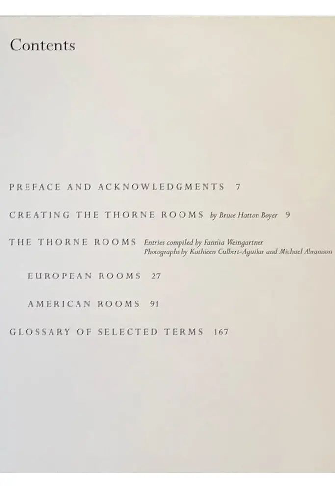 Miniature Rooms, the Thorne Rooms at the Art Institute of Chicago. Softcover book, published in 1984 by Abbeville Press. Printed in Japan, 168 pages.