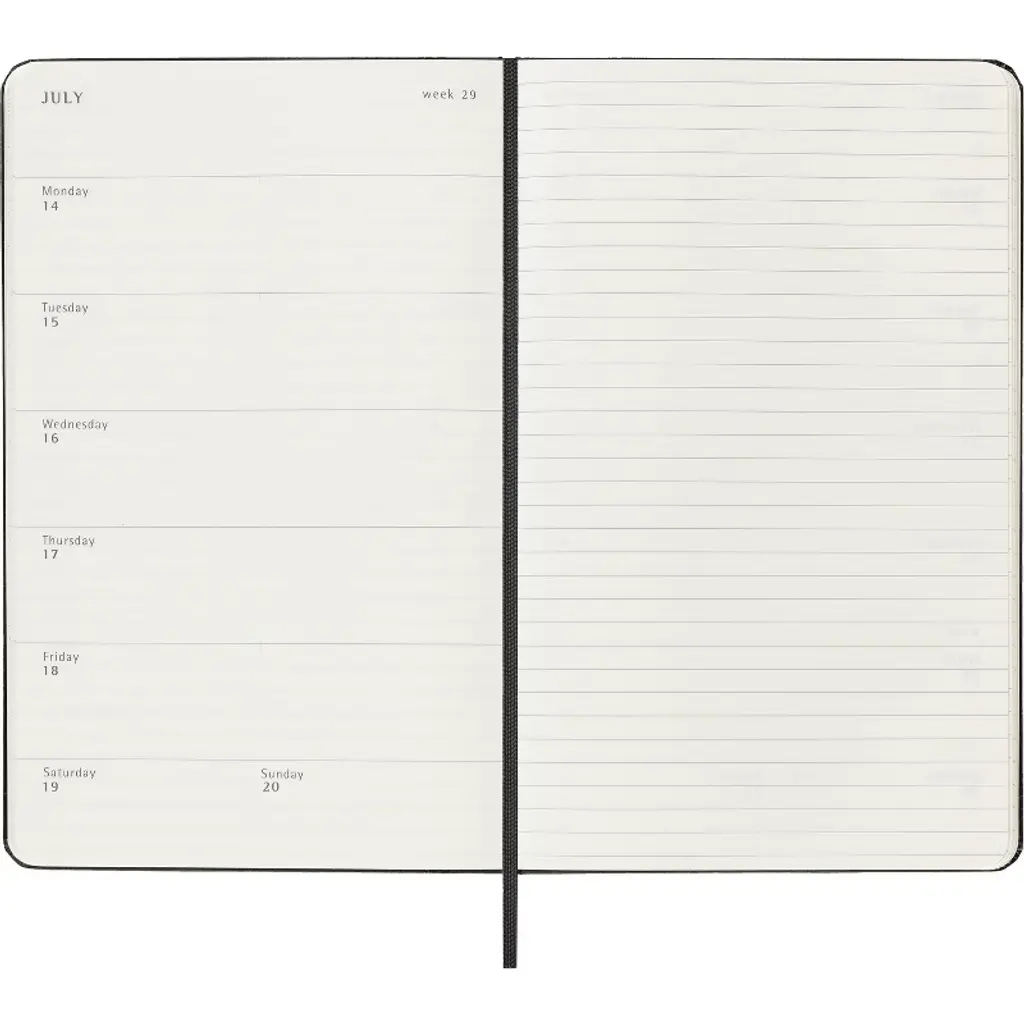 The Moleskine 18-Month Weekly Notebook Diary/Planner runs from July to December. Formatted to show the week's appointments on the left and a ruled page for notes and ideas on the right, this popular planner style is perfect for students, teachers and professionals.