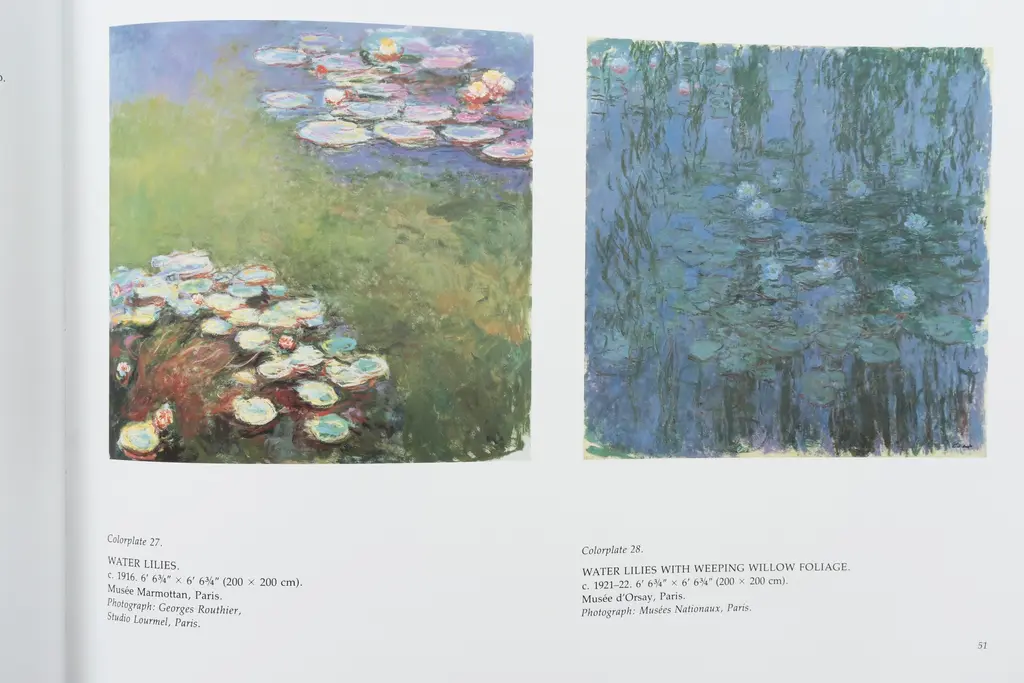 Monet - Water Lillies by Charles F. Stuckey. Hardcover book with dustjacket. First edition, published in 1988 by Beaux Arts Editions. 99 illustrations, 132 pages.