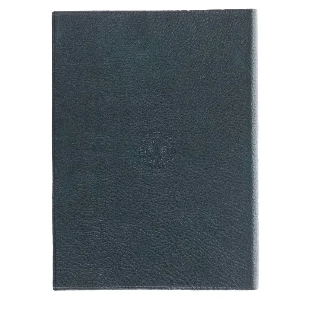 Elegant notebook in soft black leather treated with the technique of vegetable tanning. It contains ivory pages, hand decorated on the outside with the signature marbling of Florentine bookbinder Giannini. The book can be customized with a variety of monograms and engravings, as shown in the pictures. Please select the “Please contact me to discuss available options” button during the checkout process, in the “Shipping” section, and our concierge team will contact you immediately to customize your book.