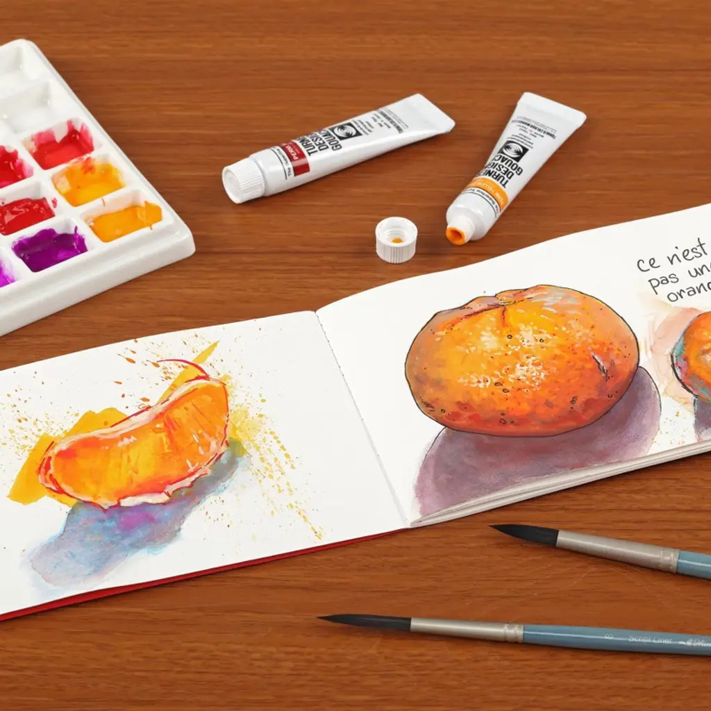 Introducing the Eternity Ninety Flat Watercolor Paper Sketchbooks by New York Central, a sophisticated choice for discerning artists and creatives who appreciate the nuances of quality craftsmanship in their watercolor sketchbooks. These sketchbooks are meticulously designed to cater to the needs of watercolor enthusiasts, whether you're painting in a studio or capturing the beauty of the outdoors with a travel watercolor book. The sketchbooks feature 90 lb cold-pressed watercolor paper, comprised of 100% cotton, ensuring that each stroke and wash is rendered in unparalleled clarity and vibrancy. With 20 pages (10 sheets) per book, artists can seamlessly document their artistic journey, from preliminary sketches to finished watercolor works. Each watercolor paper journal is acid-free and archival, preserving your work for years to come without the fear of yellowing or degradation. An elastic band holds the journal closed, making it ideal for travel and ensuring your artwork remains secure and protected. The stitched signature binding allows the pages to lay flat, providing a stable surface for sketching and painting. The lightweight design of these watercolor sketchbook journals makes them perfect for artists who prefer to keep a portable sketchbook at hand, ready to capture inspiration as it strikes. Available in sophisticated black or red soft-bound covers, each adorned with elegant gold foil-stamped decoration, these sketchbooks are not only functional but also aesthetically pleasing. Perfect for light watercolor washes and sketching, this 100% cotton watercolor sketchbook offers a versatile surface for various techniques.
