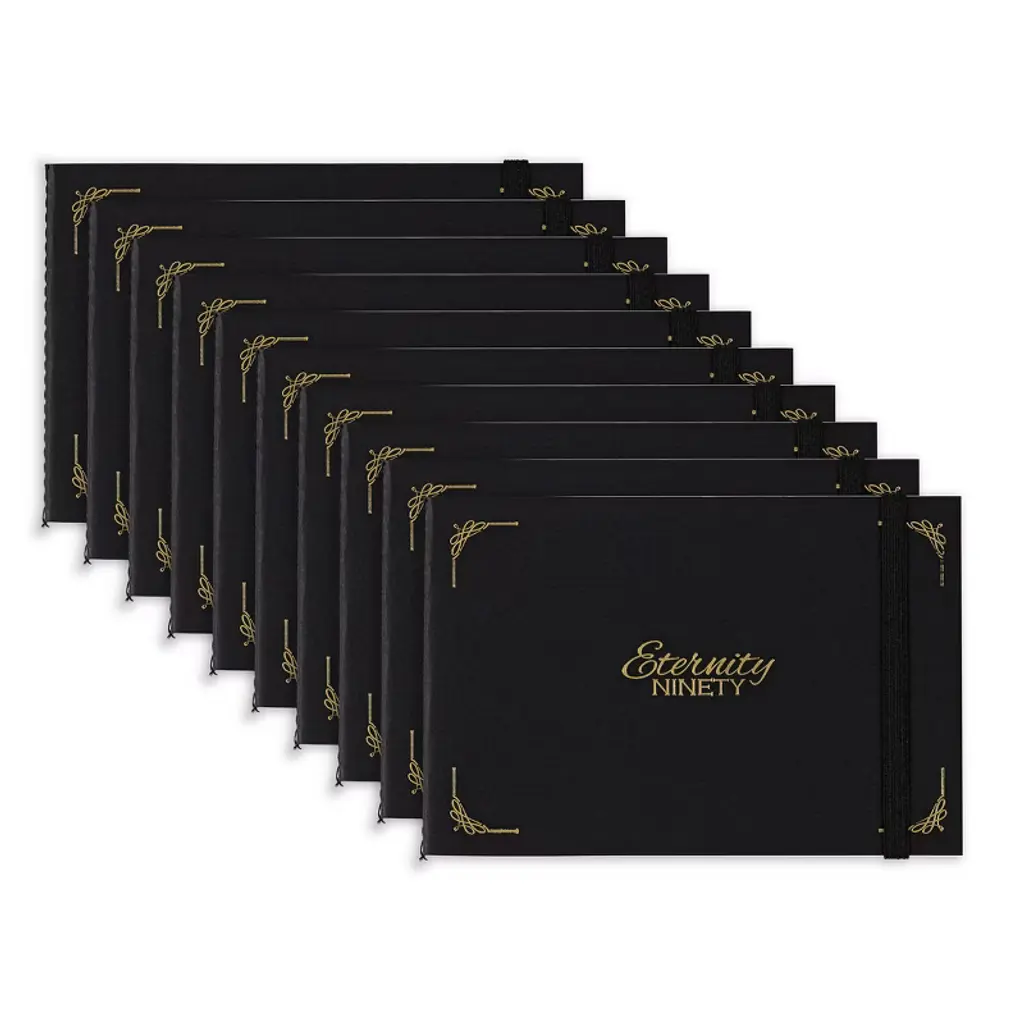 New York Central Eternity Ninety Flat Book- 5.5x8.5" Sketch Watercolor Journal, 10 Pack- Black Soft Paperback- Watercolor Sketchbook W/ Elastic Band,