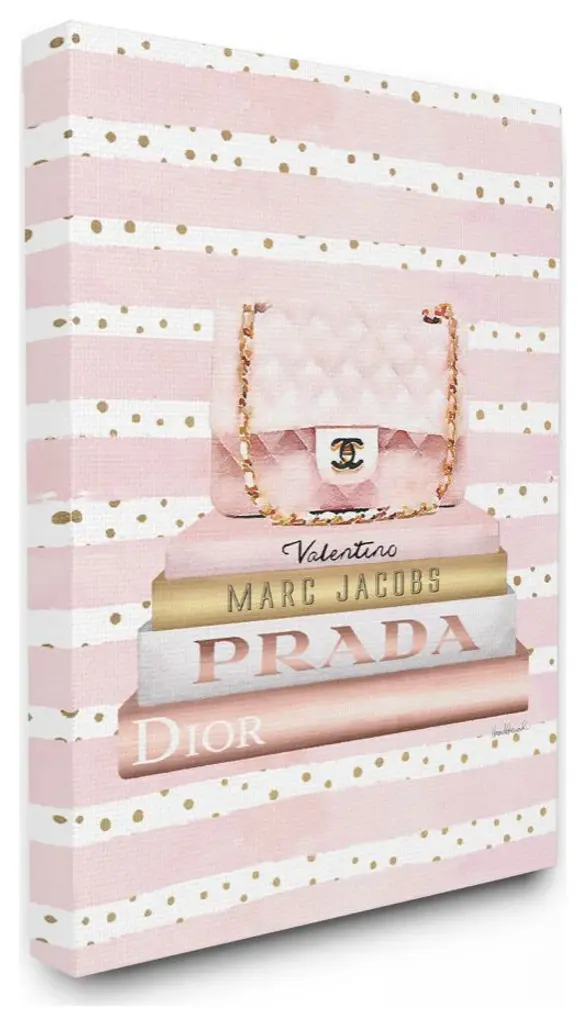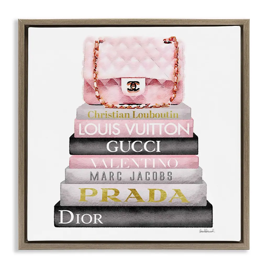 Pink Designer Bag On Fashion Bookstack Over Pattern16x20