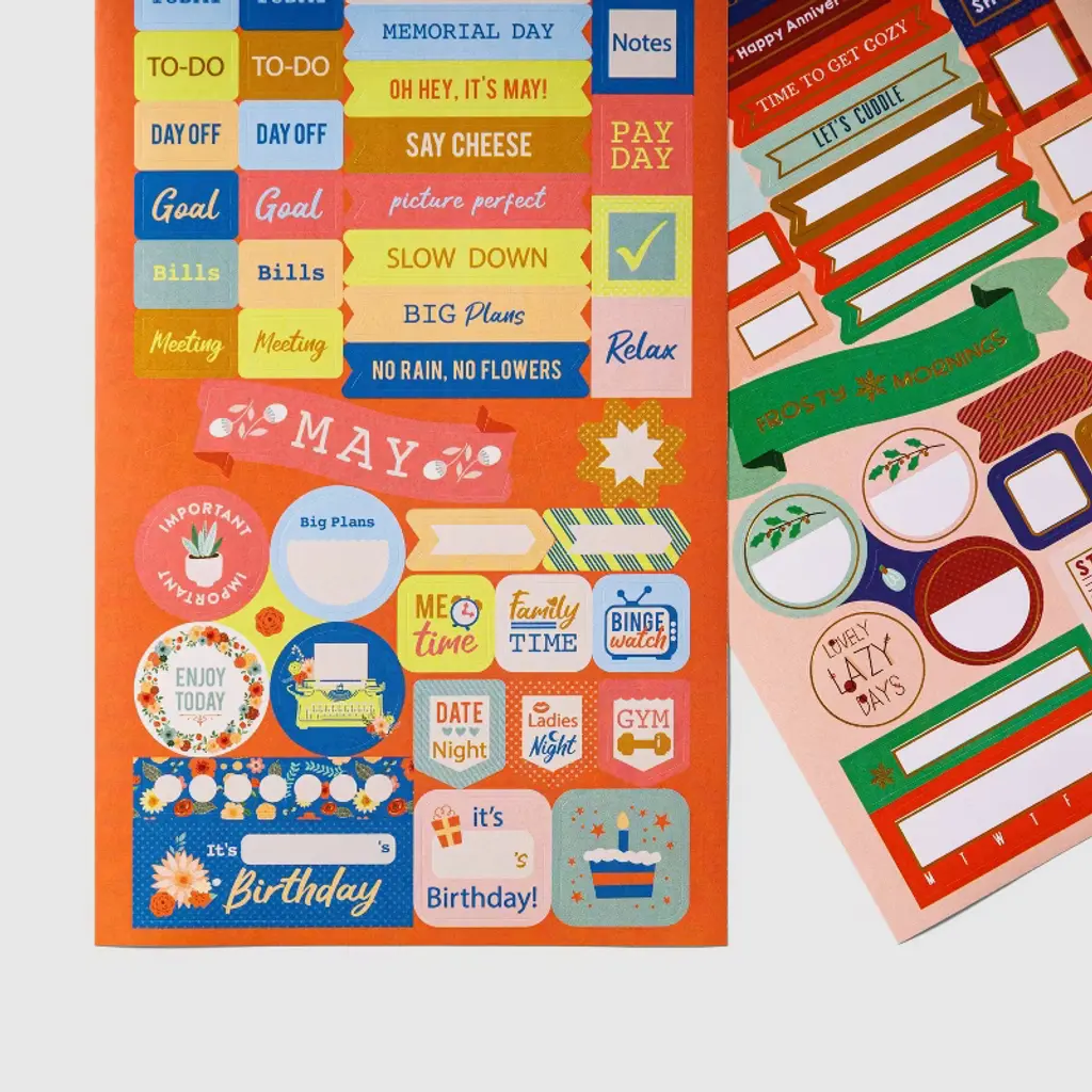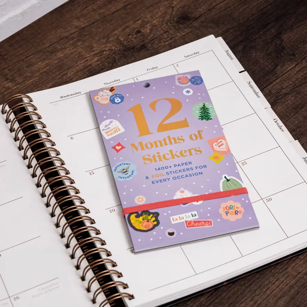 Plan, decorate, and celebrate every season with the Year of Planning Sticker Book in a soft lavender cover. With 30 total sheets of colorful and foil-accented stickers, this book is packed with everything you need to make your planner or journal shine year-round. Whether you're marking birthdays, holidays, appointments, or goals, these themed stickers bring charm and organization to every page. The convenient elastic closure keeps everything neat and secure, making it perfect for on-the-go use. From winter snowflakes to sunny summer icons, you'll find stickers to match your mood and your month.