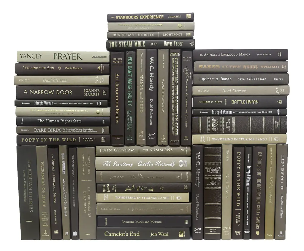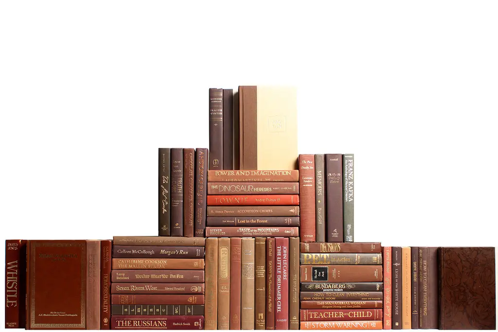 Take your design to a new level with the Modern Chocolate Book Wall S/50 from Booth & Williams. Fifty (50) authentic modern hardback books in crisp shades of light, medium and dark brown. All books are published 1980-present and include a variety of literary works, period novels and topical texts with light overall wear. Books total approximately 5 linear feet with an average height of 8.5-9.5". ACTUAL TITLES WILL VARY FROM THOSE PICTURED BUT WILL MAINTAIN THE SAME COLOR PATTERN.