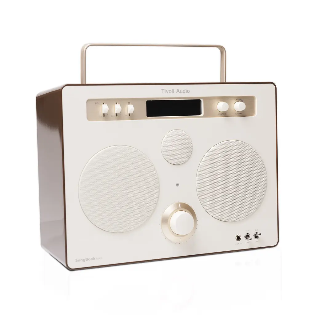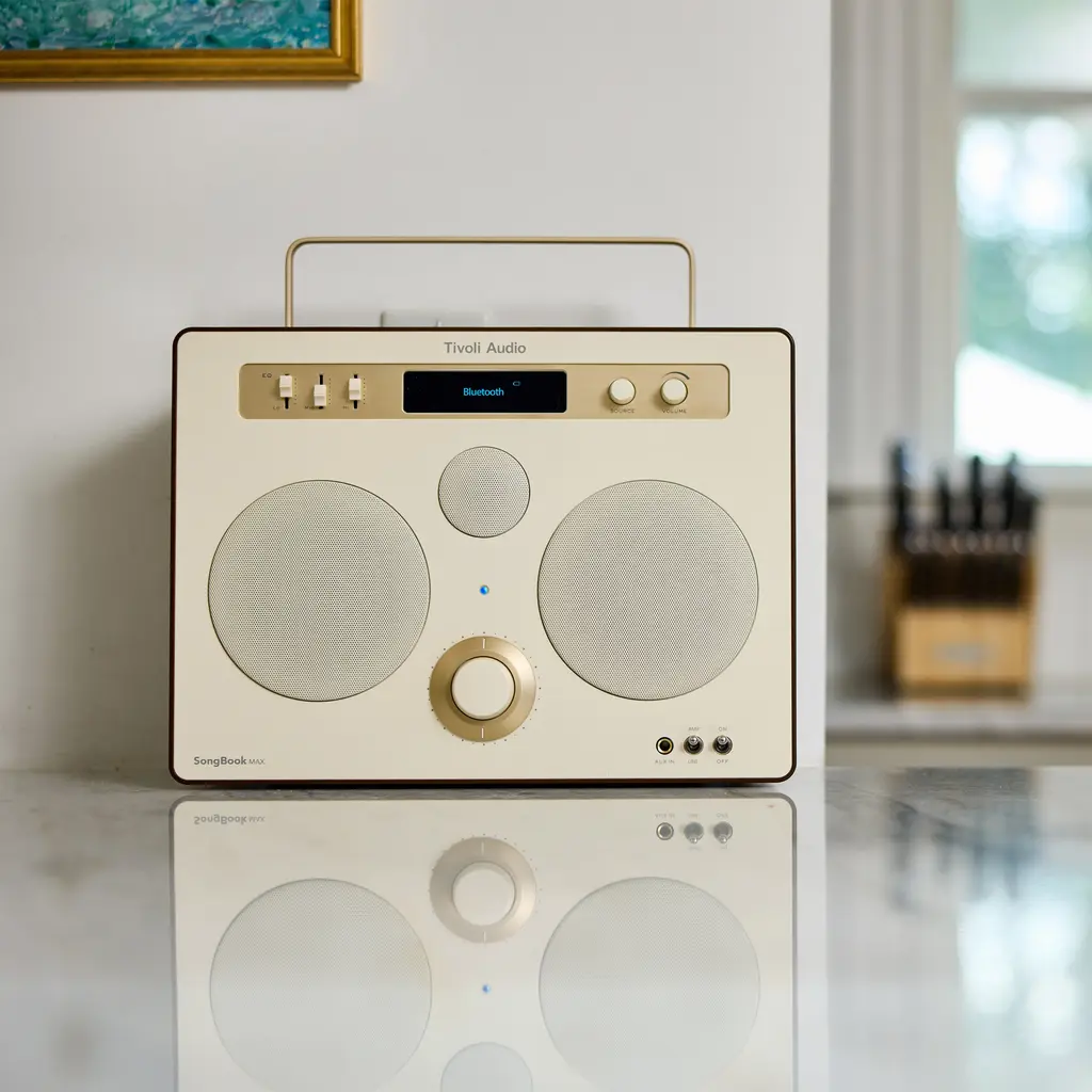 The SongBook MAX Premium Bluetooth Sound System from Tivoli Audio is a luxurious masterpiece of sound, combining timeless design with unrivaled quality. Boasting vintage-inspired style, bold colors, and a convenient carry handle, it provides a larger-than-life audio experience. With multiple drivers, a ten-hour battery life, a built-in preamp, and a fully integrated DAB/DAB+/FM radio, this Bluetooth marvel will take your favorite tunes to the next level. Highlights