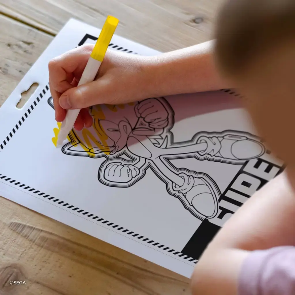 Little ones can use their choice of color on every page with Bendon’s Sonic the Hedgehog Imagine Ink® COLOR! Coloring Book! This patented technology magically reveals the color of each Magic Ink marker. Your little artist will love coloring favorite Sonic the Hedgehog characters, and you'll love the magic of mess-free coloring! The standard trim size for this coloring book is 7.75 inches by 10.75 inches.