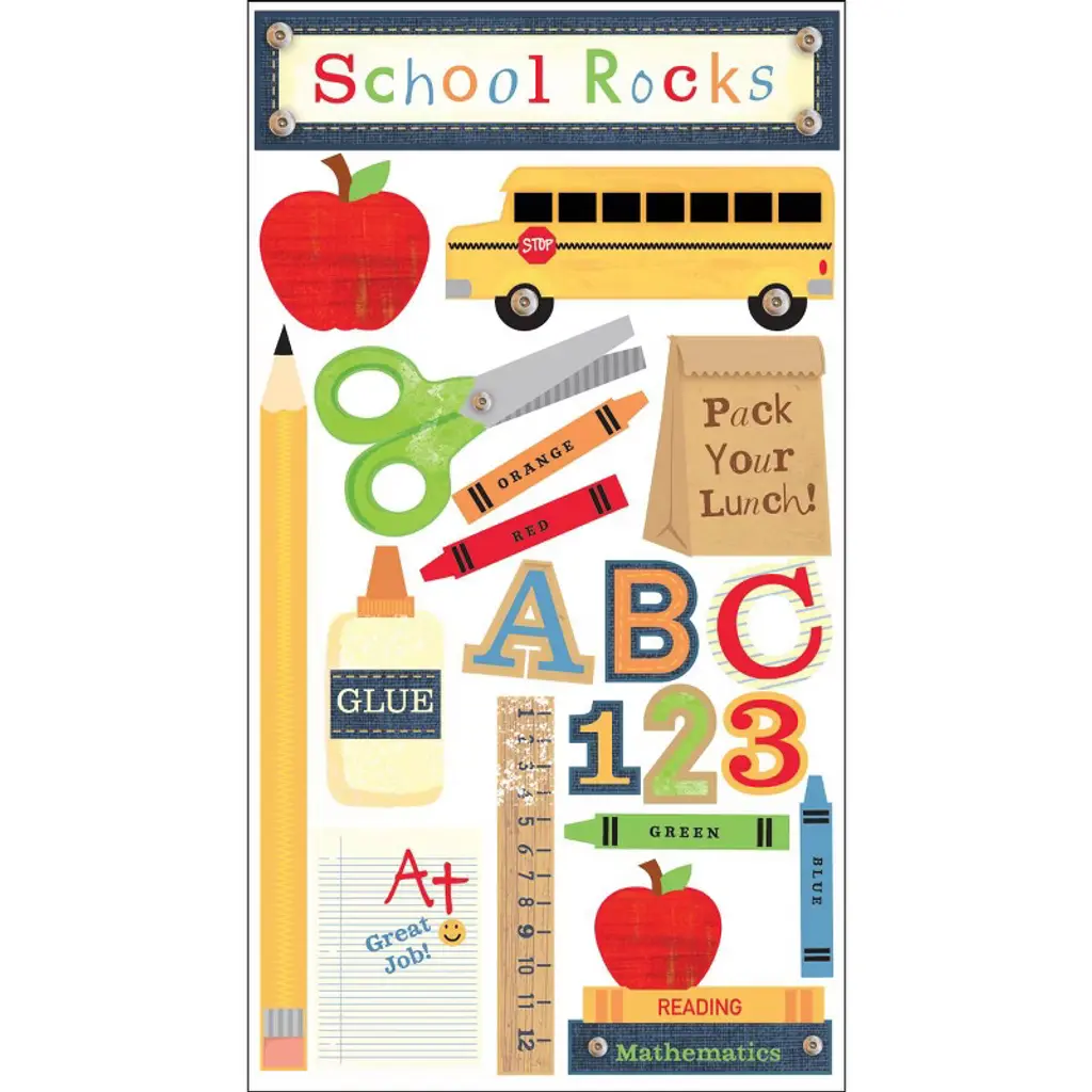 Stickers add the perfect finishing touch to your paper projects. Stickers can be a fun embellishment, a whimsical accent or add elegant polish to scrapbook pages, greeting cards, mixed media and more. This package contains Sticko Stickers - School Rocks, 24 stickers. Imported.