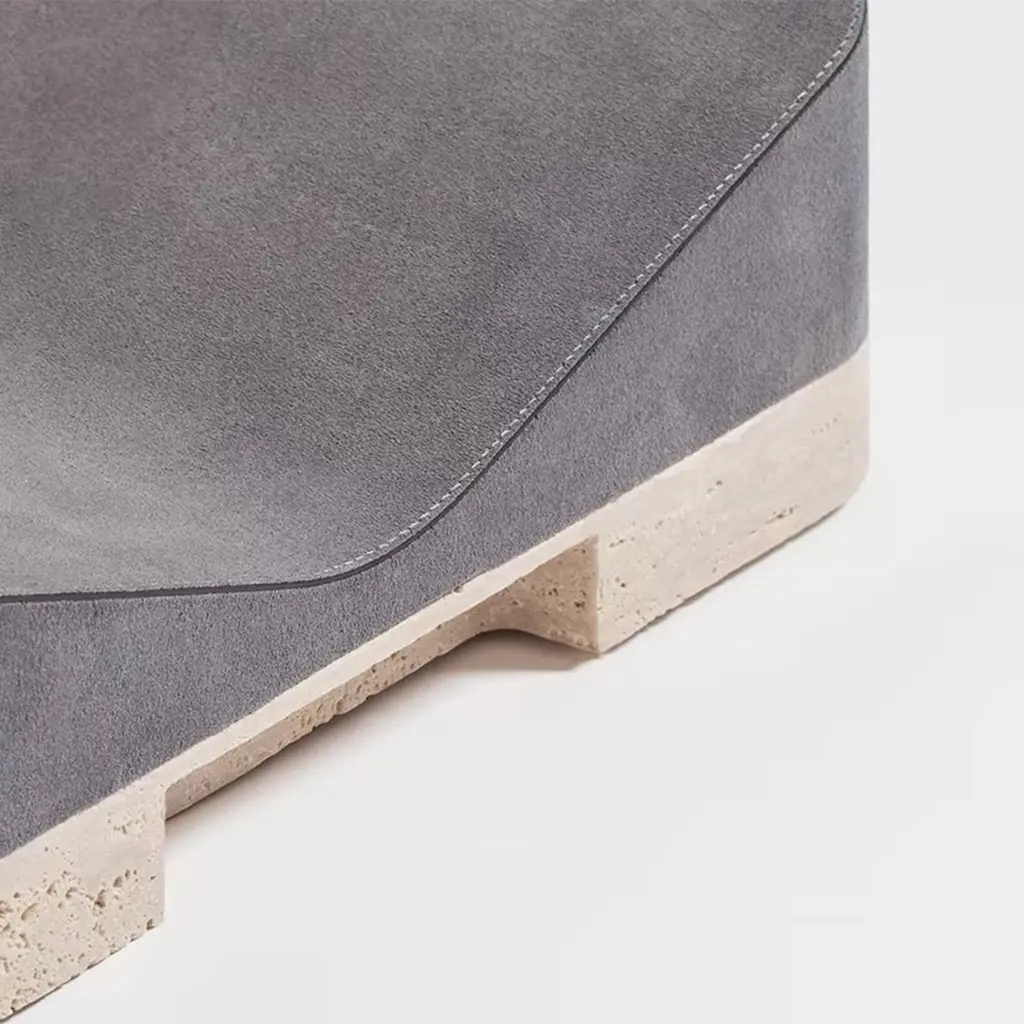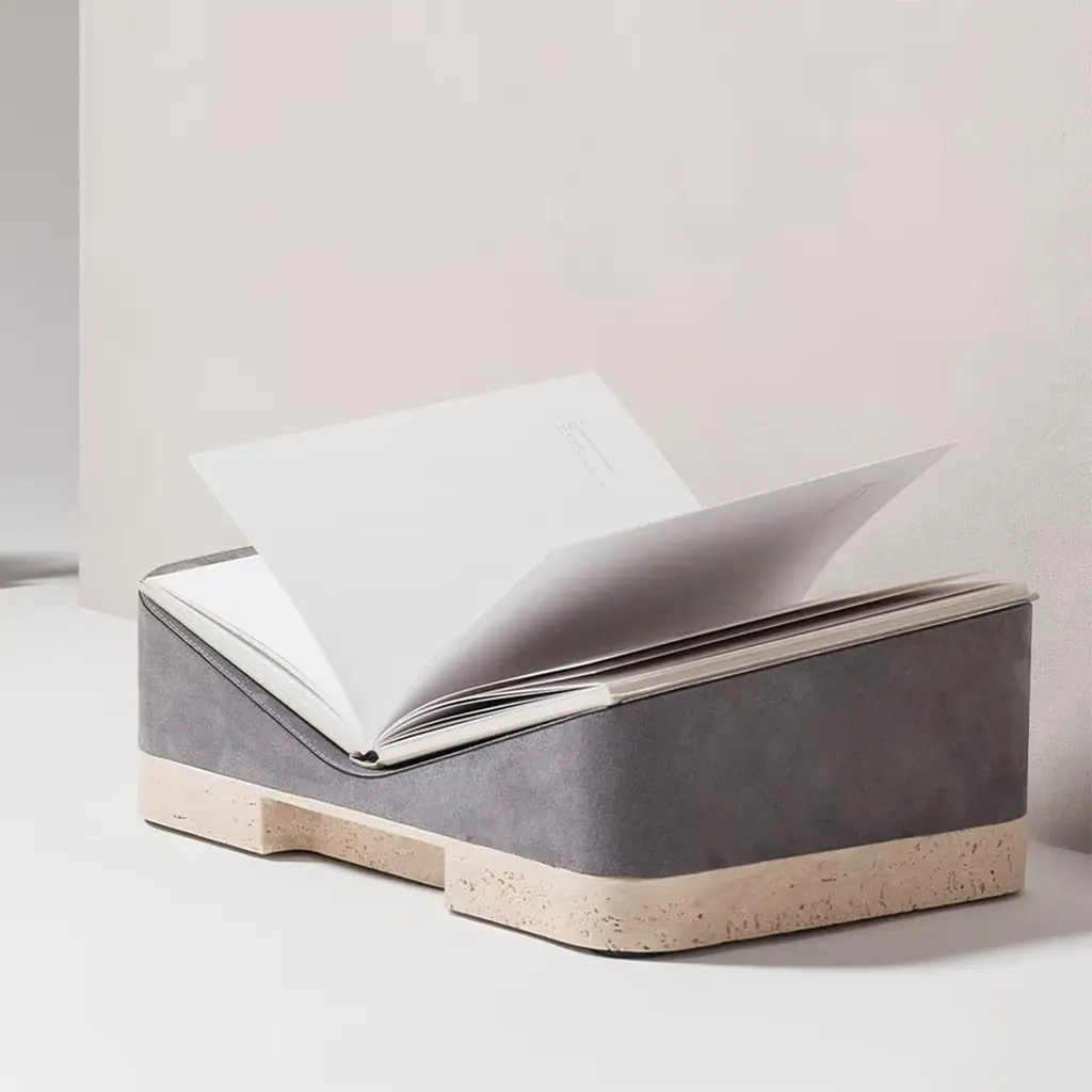 Bookrest Sweden Travertine with all structurein travertine and with sweden leather coveringin blue color.Also available with other with sweden leather covering colors, on request.