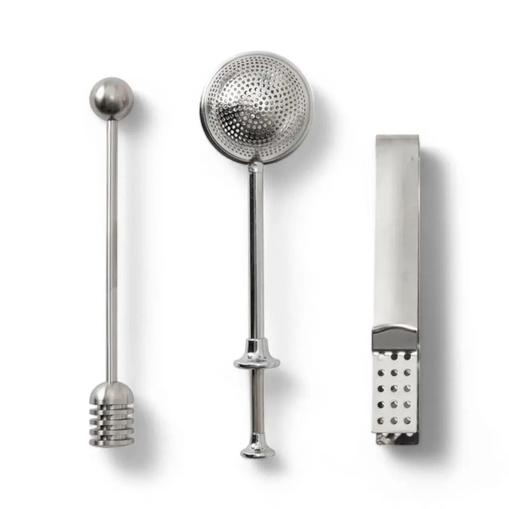 Take your tea ritual to a new level. Hidden in an elegant box disguised as a book is a set of tea tools. Preparing the tea becomes as enjoyable as drinking it. The Set Includes: 1 Tea Tong - Pick up your tea bags with grace without getting any fingers burned. 1 Tea Infuser - An easy to use infuser, with a clever design to fill and remove tea leaves. 1 Honey Dipper - Helps you easily collect and distribute honey from the jar without any mess. All products are made of stainless steel and are dishwasher safe. Enjoy your tea times! Available for Local Deliveries Only. Set Includes: 1 Tea Tong, 1 Tea Diffuser, 1 Honey Dipper | Stainless Steel | Dishwasher Safe