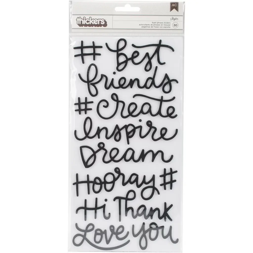 Stickers add the perfect finishing touch to your paper projects. Stickers can be a fun embellishment, a whimsical accent or add elegant polish to scrapbook pages, greeting cards, mixed media and more. This package contains Pebbles Kids At Heart Thicker Stickers -Foam Phrases, 27 pieces. Imported.
