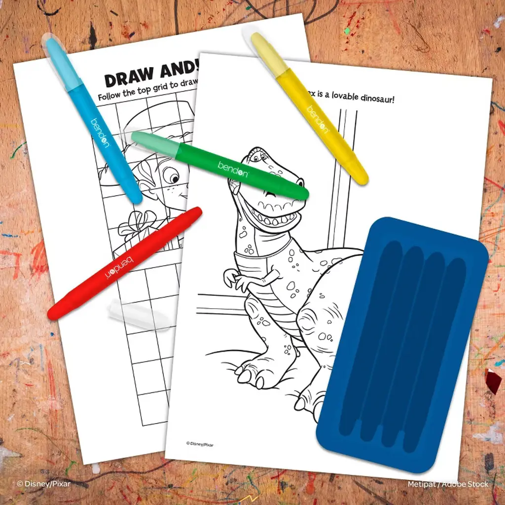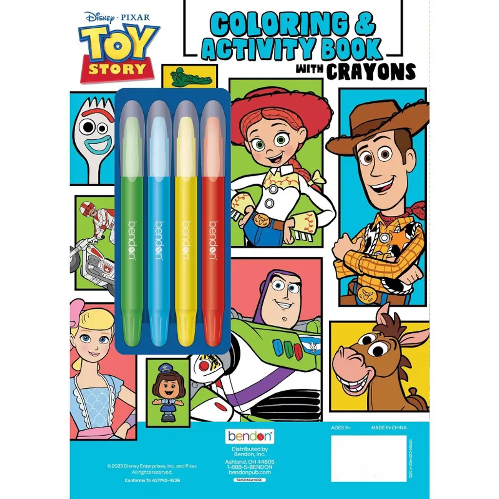 Jumbo size your little artists coloring adventures with Bendon's Toy Story Coloring and Activity Book with Jumbo Twist-Up Crayons! This book is full of coloring, activities, and games with 4 big twist-up crayons that are perfect for little hands! The standard trim size for this coloring book is 7.75 inches by 10.75 inches.
