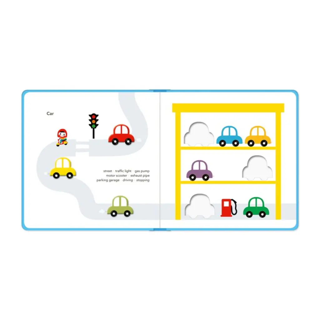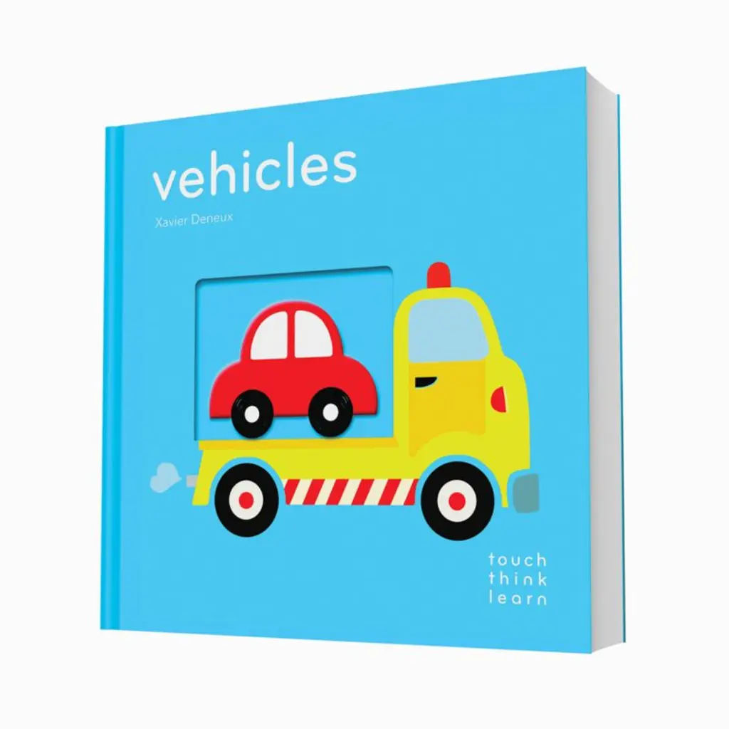 The "Vehicles Touch Think Learn" board book encourages hands-on learning in inventive fashion. Featuring a series of raised vehicles that fit into cutouts on the opposite page, the book aids in sensory development by allowing tiny readers to trace and feel the vehicles and shapes. Related words on each spread create a fun chance for kids to master language.