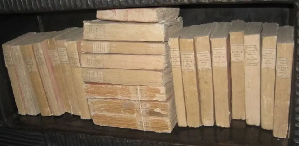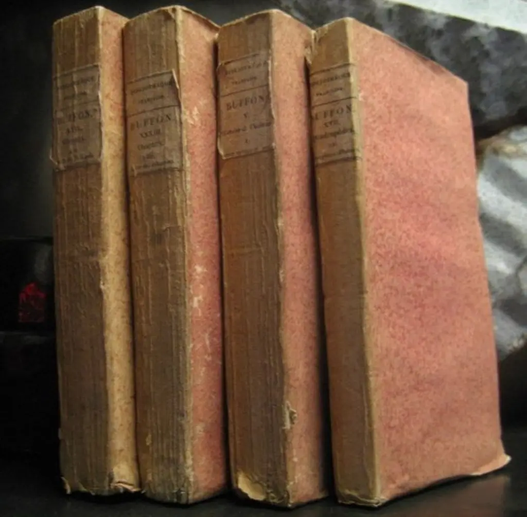 Vintage Buffon books from France circa 1825 with original red covers and labels. "Natural History Encyclopedia" & "Traveling Encyclopedia". Buffon Books: $100Non Buffon Books: $75(Each sold separately)