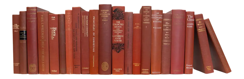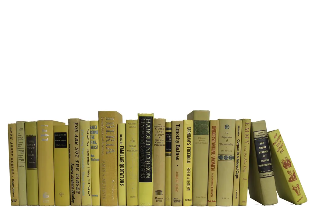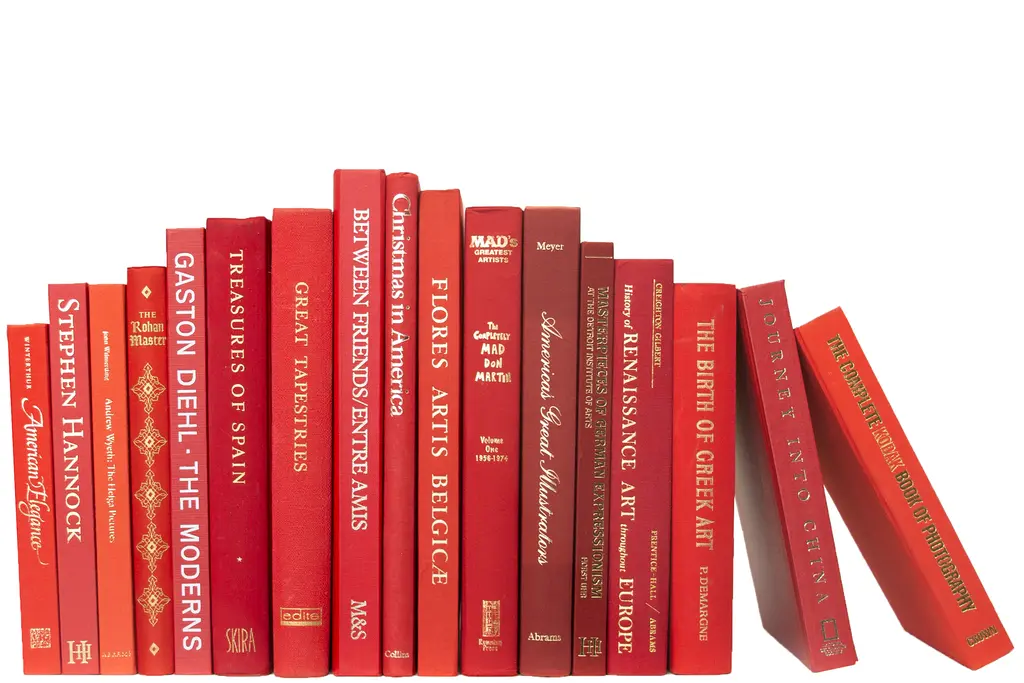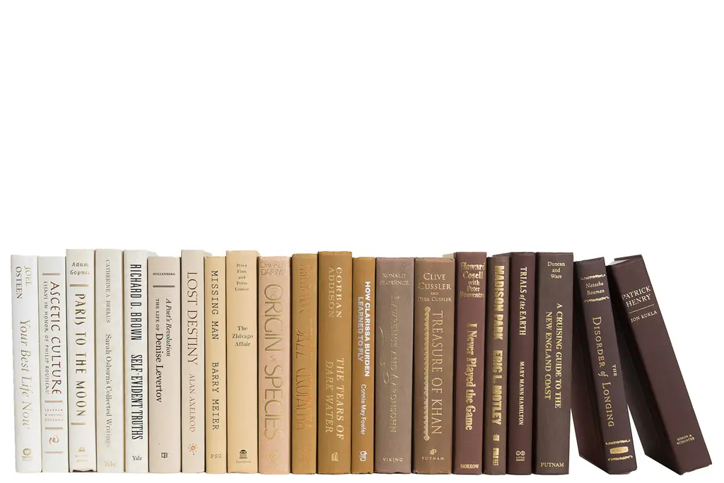 Take your design to a new level with the Vintage Sienna Color By The Foot from Booth & Williams. One linear foot of authentic vintage hardback books in blended shades of warm orange and brown. All books are published 1900-1969 and include a variety of literary works, period novels and topical texts with light overall wear. Contains 10-12 books with an average height of 8.5-9.5". Order as many linear feet as you need to complete your project. Titles will differ from those pictured.
