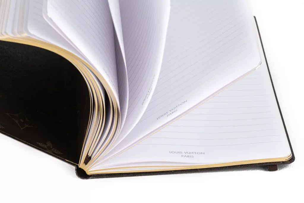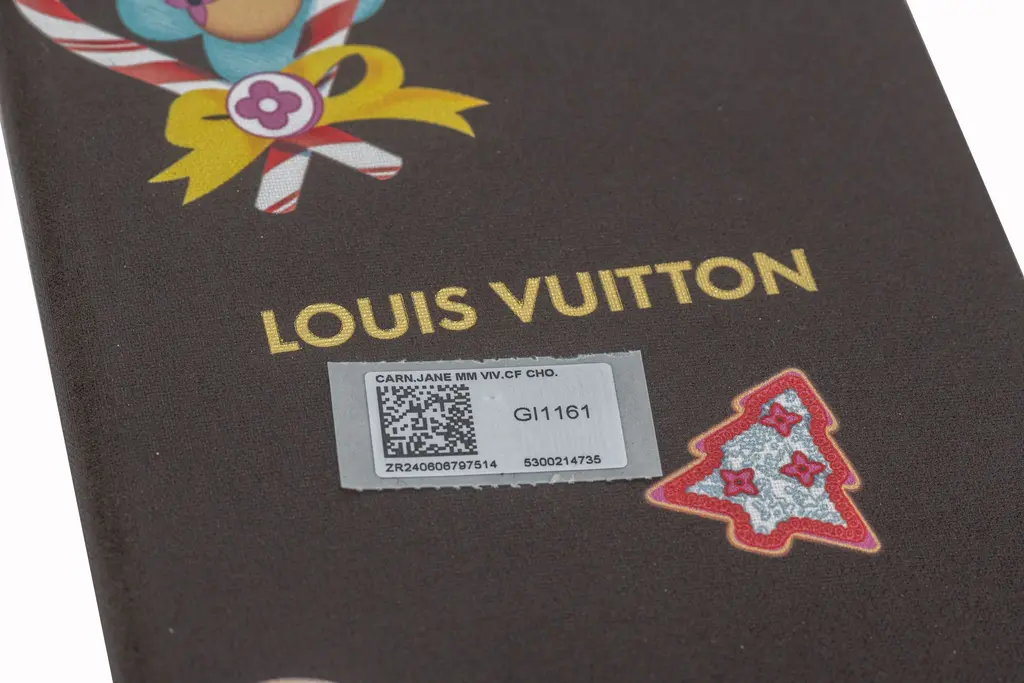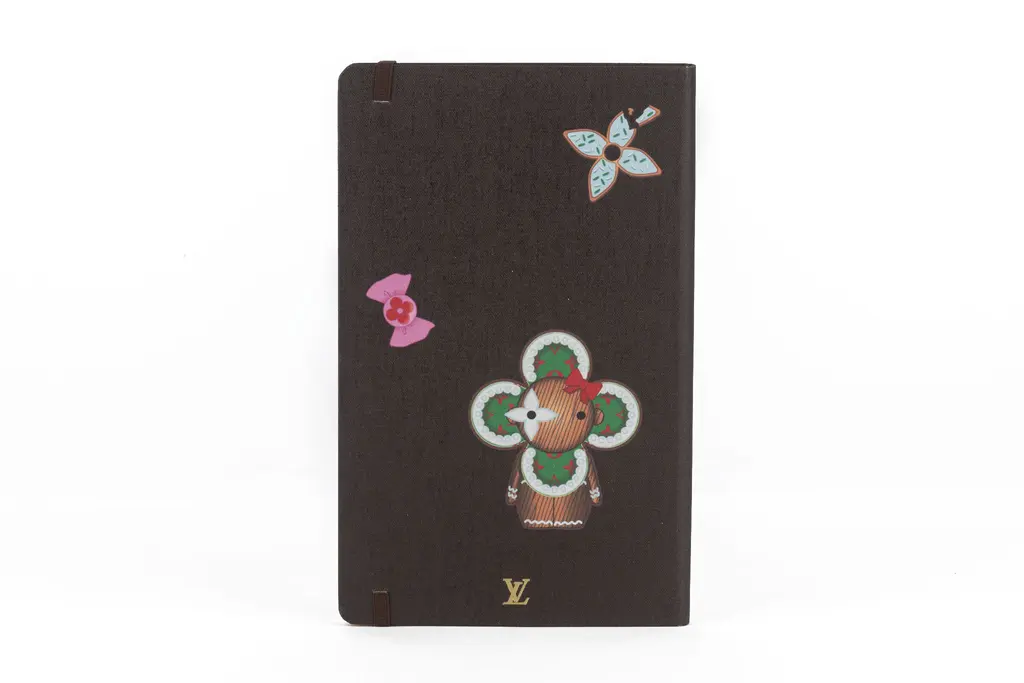 The medium-sized Jane notebook is transformed for the holidays as a special style from the Candy Factory capsule. The chocolate brown exterior is embossed with sports images of Vivienne cookies for Christmas. The edges of the pages are gold. Comes with original dust cover.