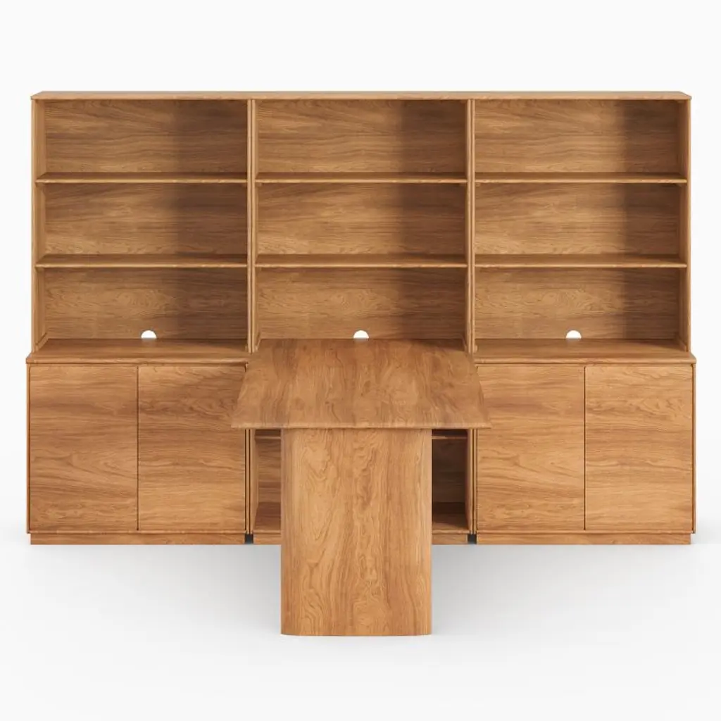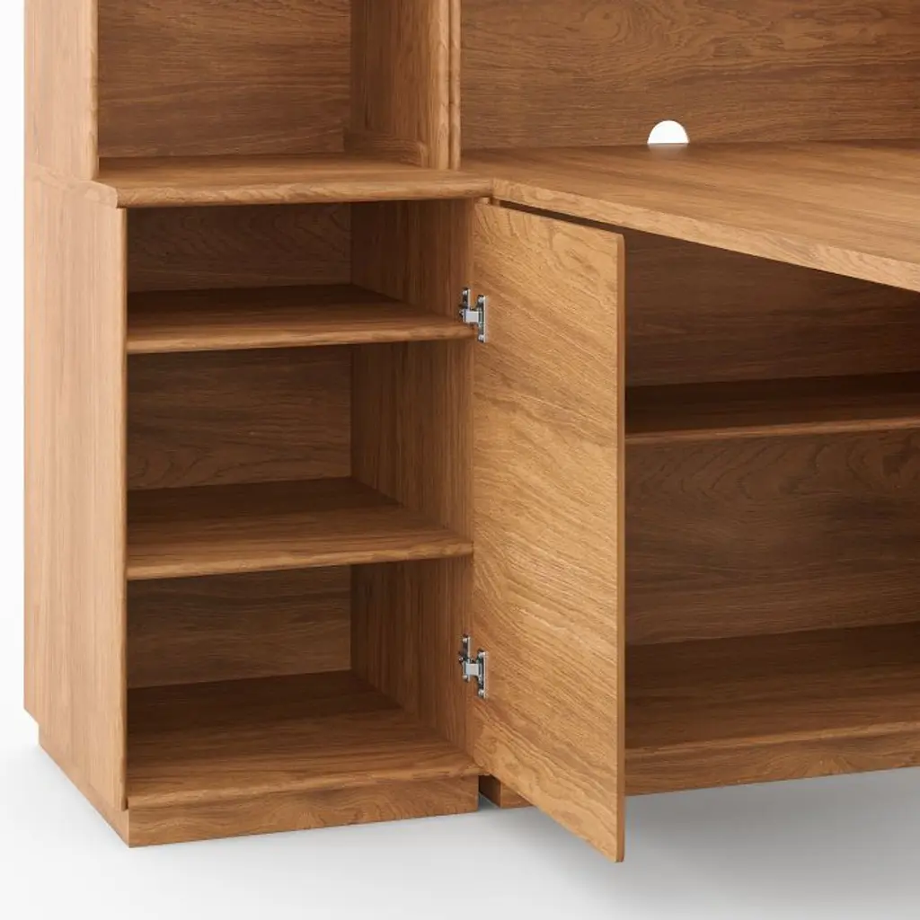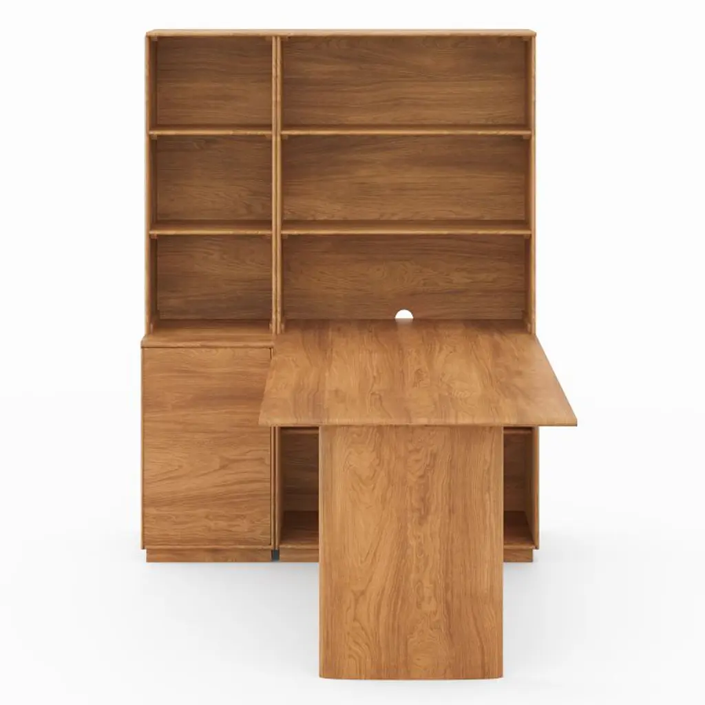 Available in a range of sizes and pieces to fit your storage needs, our Anton Peninsula Desk Collection is a functional solution for a home office or living room. It's also crafted from sustainably sourced mango wood for a modern take on rustic farmhouse style. Kiln-dried solid mango wood. The mango wood used on this product is sustainably sourced from trees that no longer produce fruit. Natural variations in wood color and grain make each piece one of a kind. Covered in a Burnt Wax finish. Desk: 2 adjustable shelves. 18" storage cabinet: 1 door opens to 1 adjustable shelf (2 compartments). 36" storage cabinet: 2 doors open to 1 adjustable shelf (4 compartments). Hutches have 2 shelves. Legs feature adjustable levelers to adapt to varying floor levels. This contract-grade item is manufactured to meet the demands of commercial use in addition to residential. See more. Made in India.
