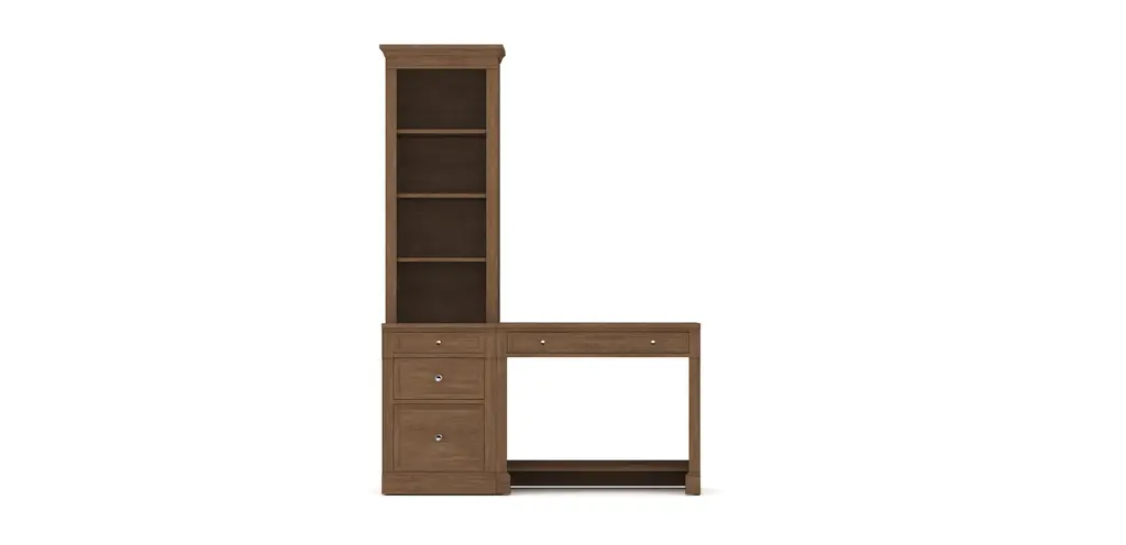 Streamline your workday with a simple yet productive office ensemble. Our Continental file bookcase, enhanced by an attached bridge desk that puts storage and workspace side by side, can be customized in the wood and hardware finishes of your choice.