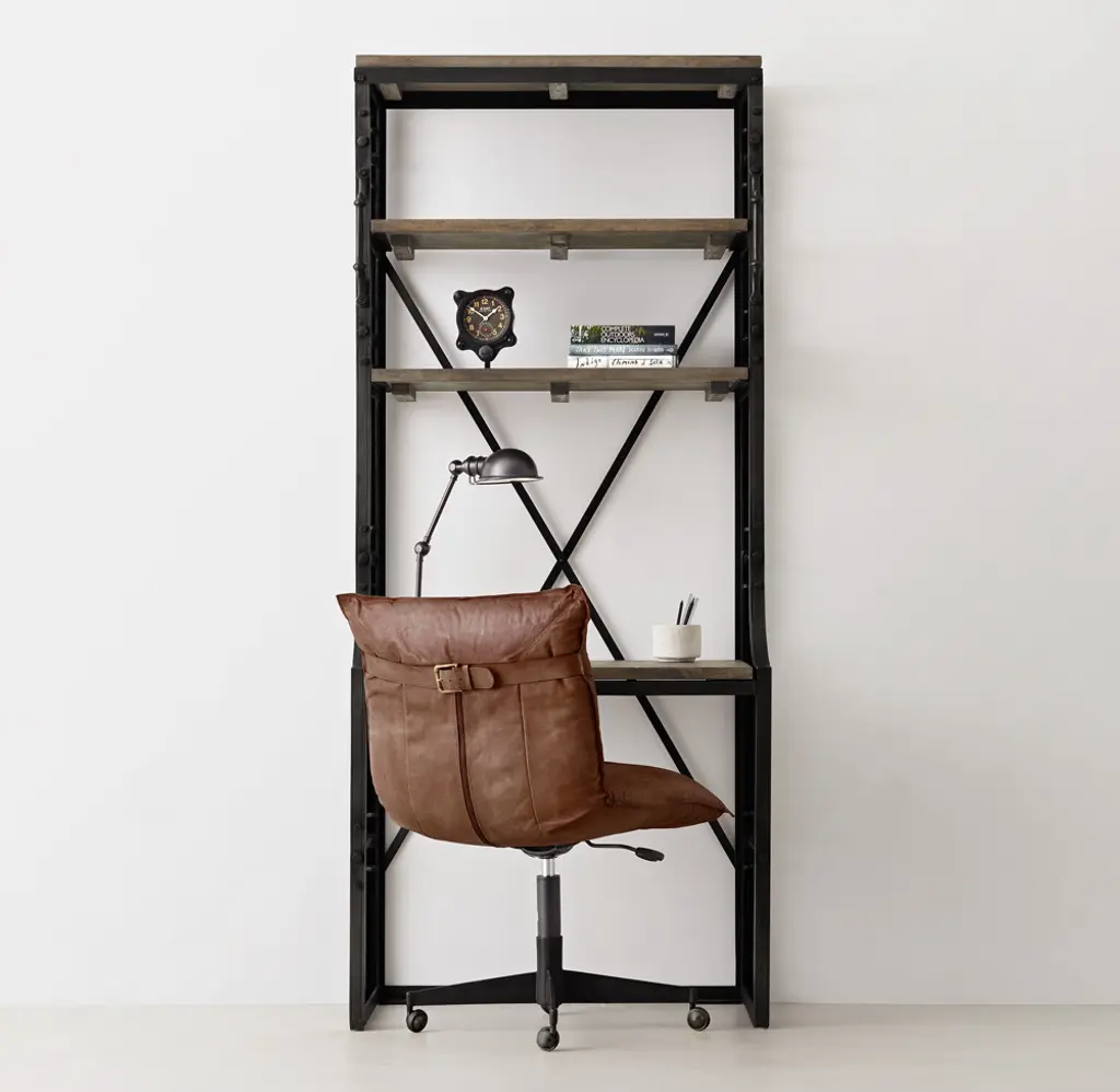 Study hall. Inspired by a mid-1940s Eastern European library bookcase, our artisanal collection is handcrafted of aged iron and hardwood. An antique patina replicates the original.