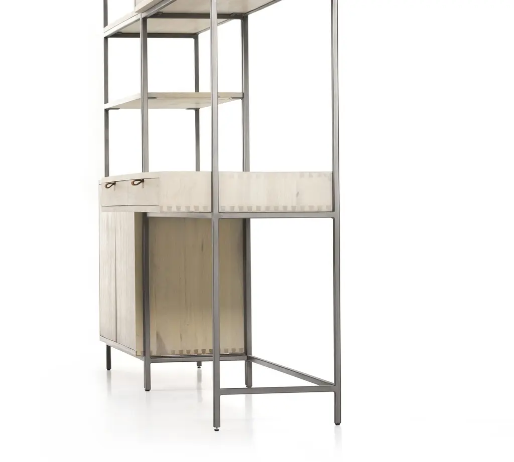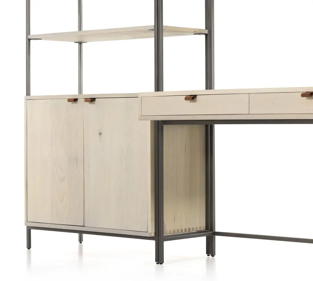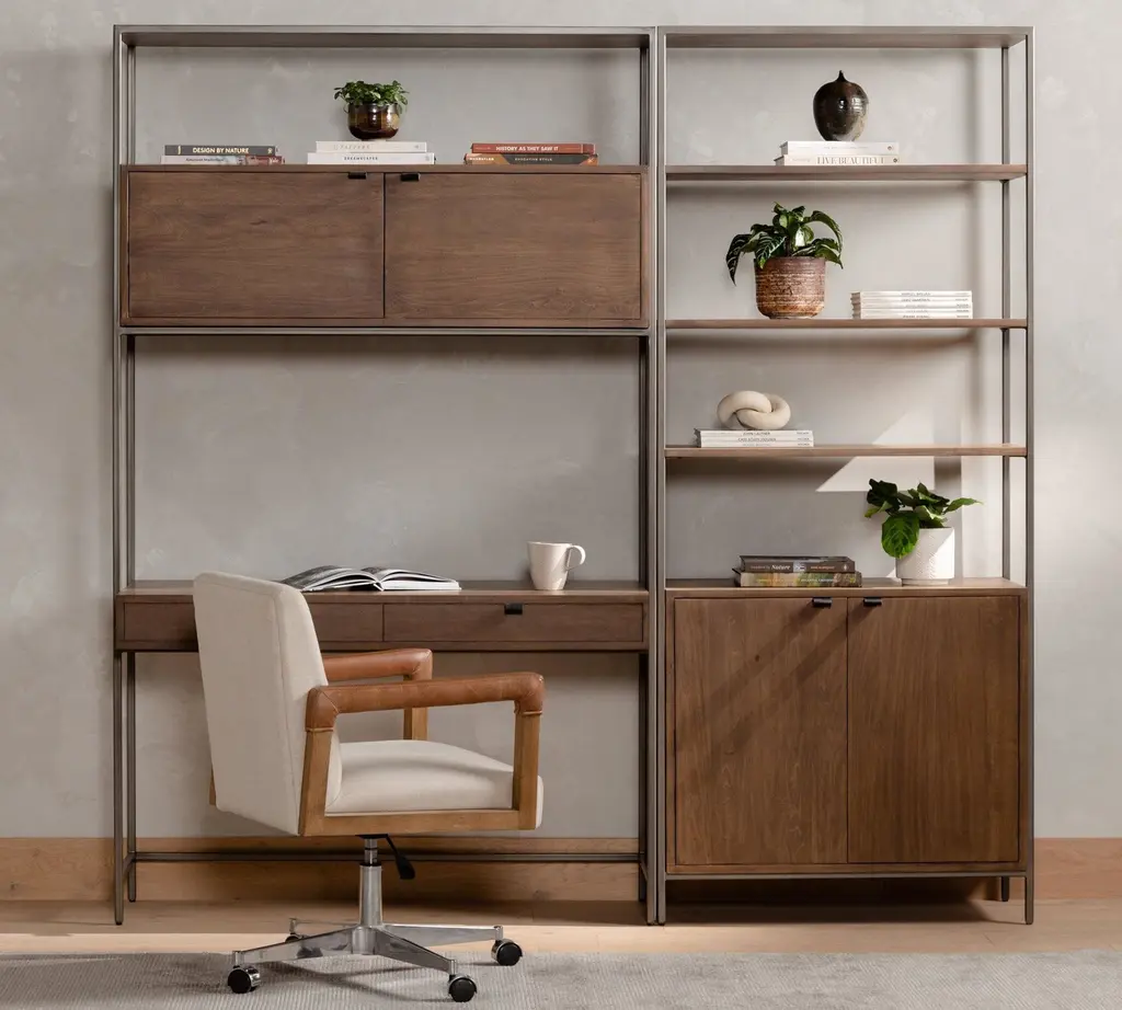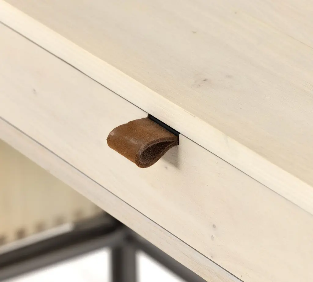 Crafted of wood, metal, and leather, Graham is a spacious and streamlined take on the mixed material trend. Design details like unexpected drawer pulls, dovetail joinery, and a high-low finish make this a standout, modern piece. It features space for storage and display, plus a desktop with plenty of room to spread out.