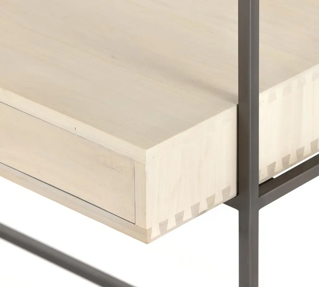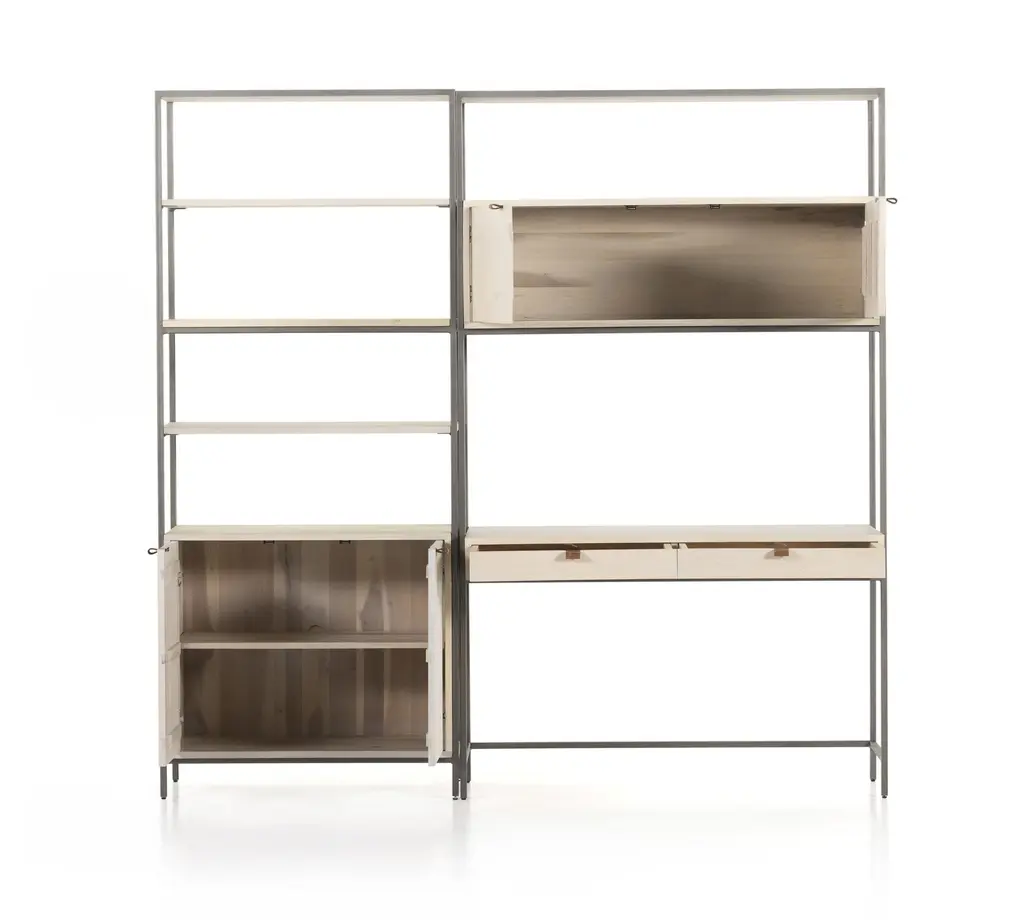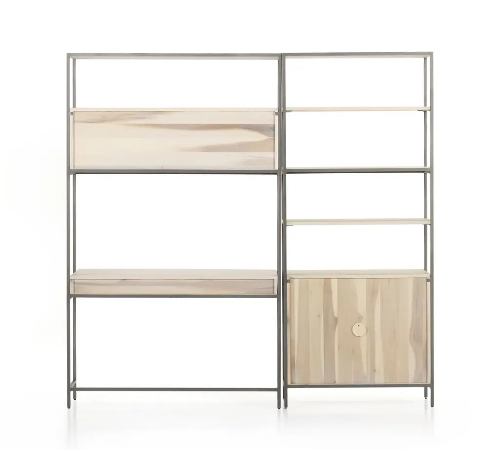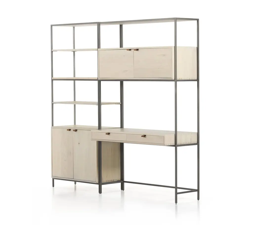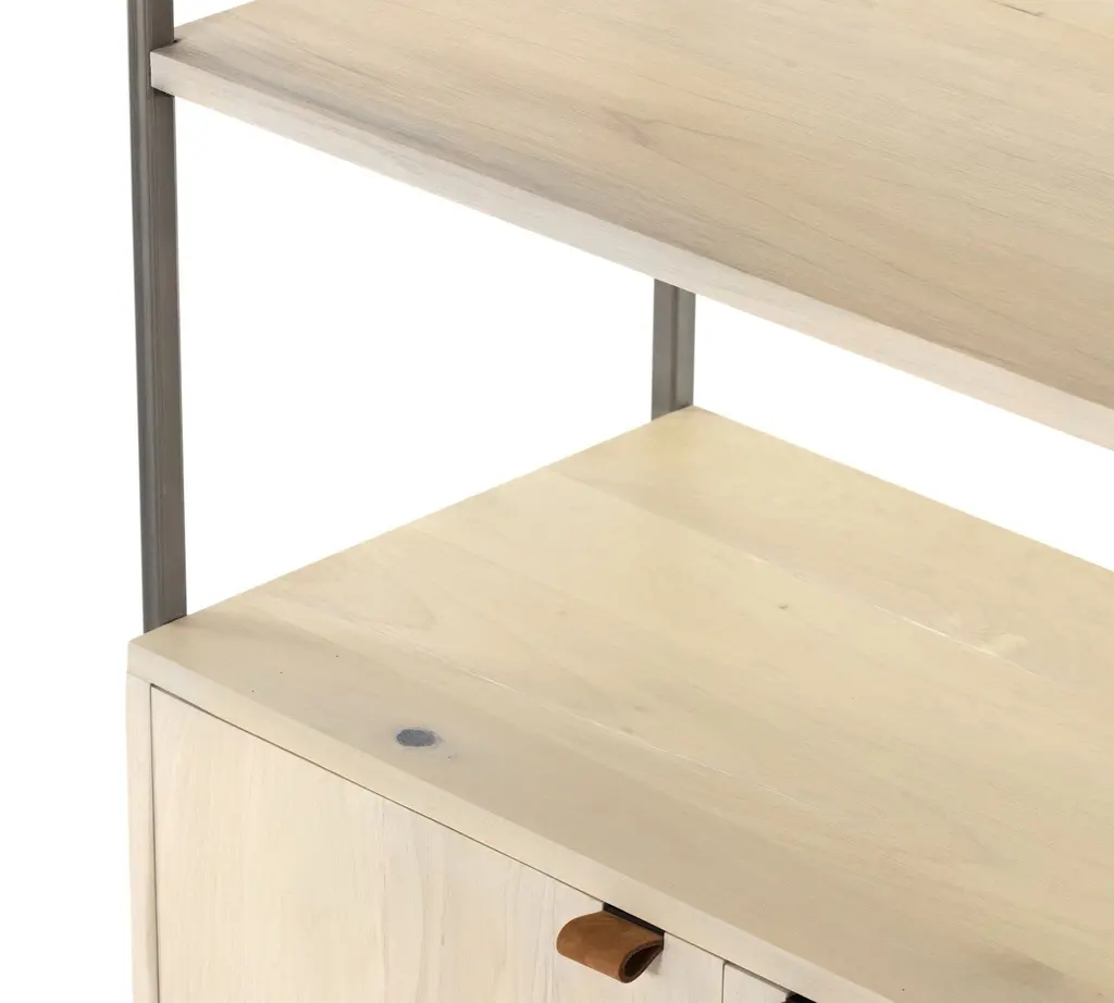 Crafted of wood, metal, and leather, Graham is a spacious and streamlined take on the mixed material trend. Design details like unexpected drawer pulls, dovetail joinery, and a high-low finish make this a standout, modern piece. It features space for storage and display, plus a desktop with plenty of room to spread out.
