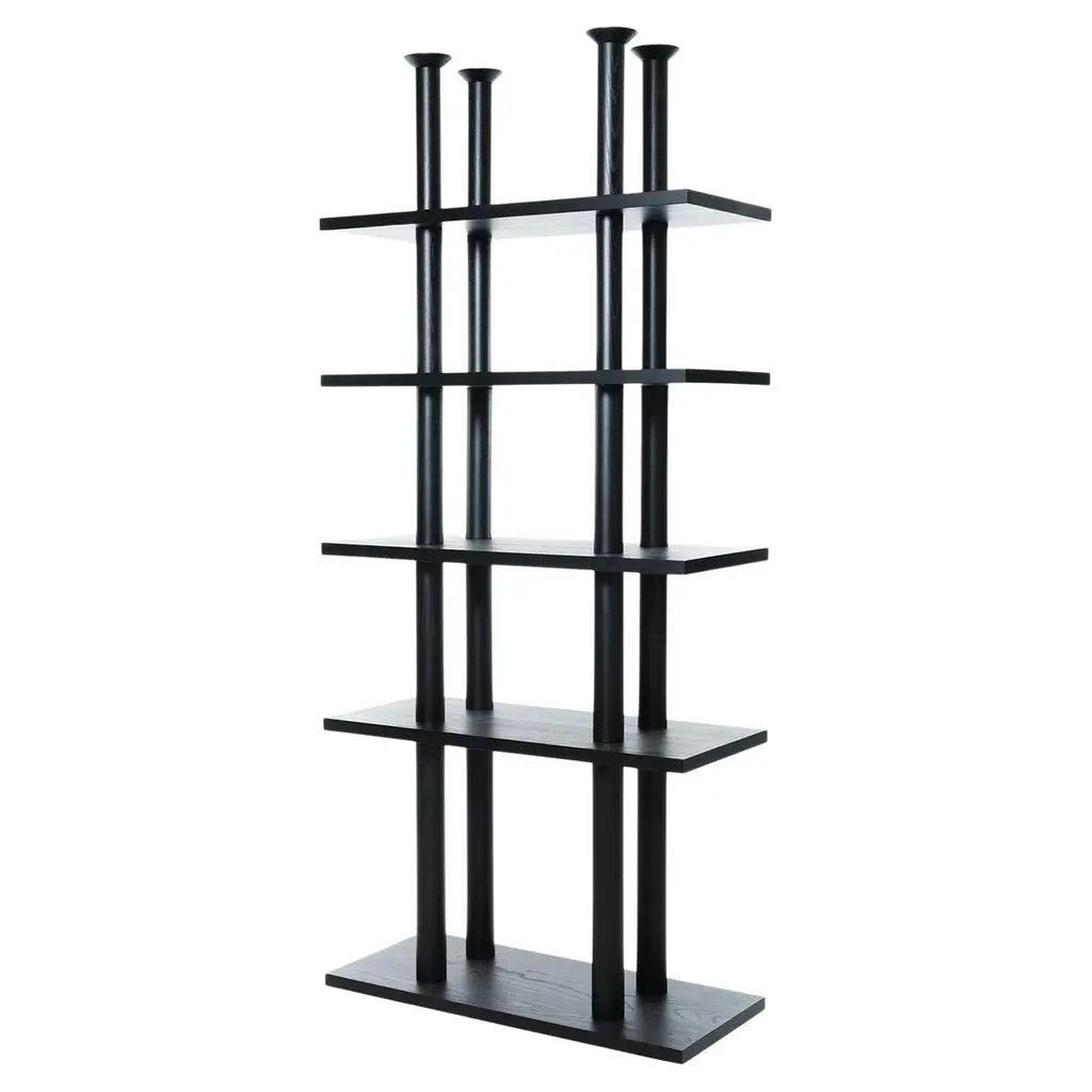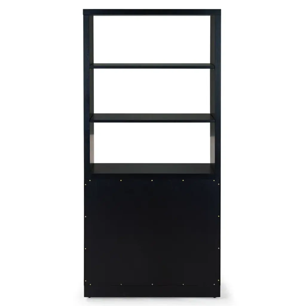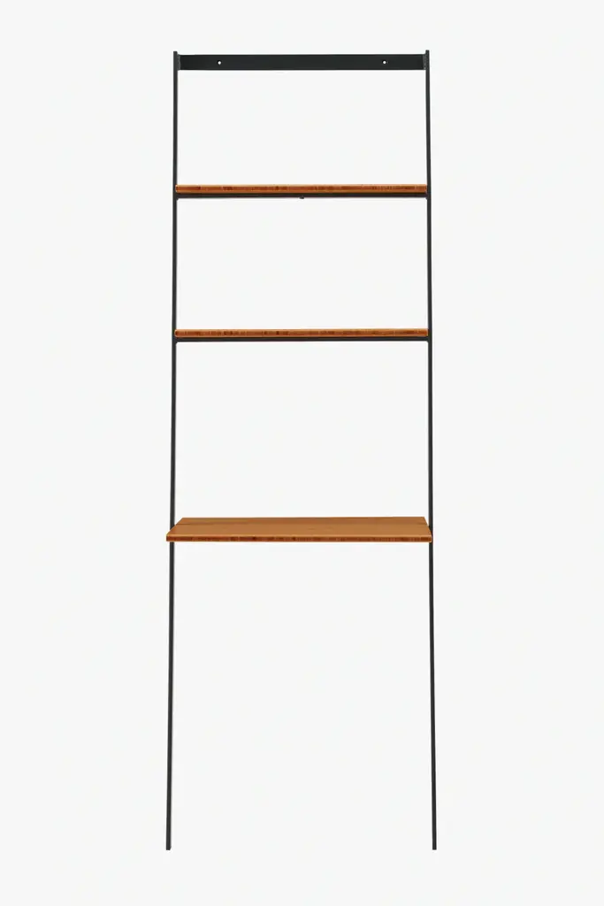 Party on top, business on the bottom. Three fixed walnut veneer shelves pan out in a powdercoated metal frame. Modularly designed to pull double duty as a display/work space and looks even better standing next to our Helix walnut bookcase. Stud mounting recommended; hardware included for drywall installation. CB2 exclusive.